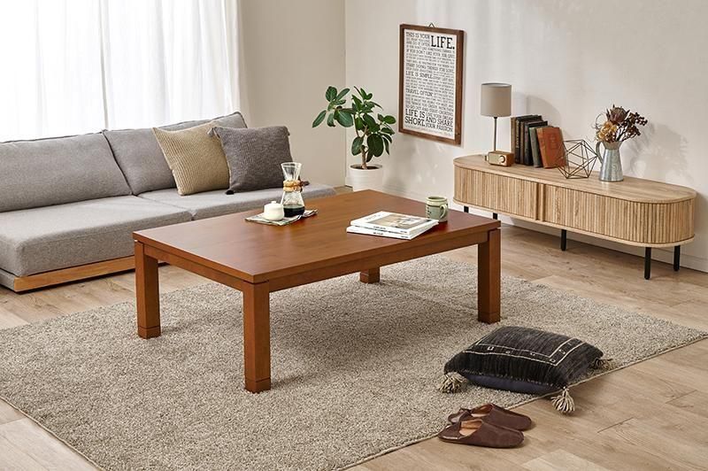 天然木アカシアの集成材突板を使用し、味のある風合いを楽しめるこたつテーブル。