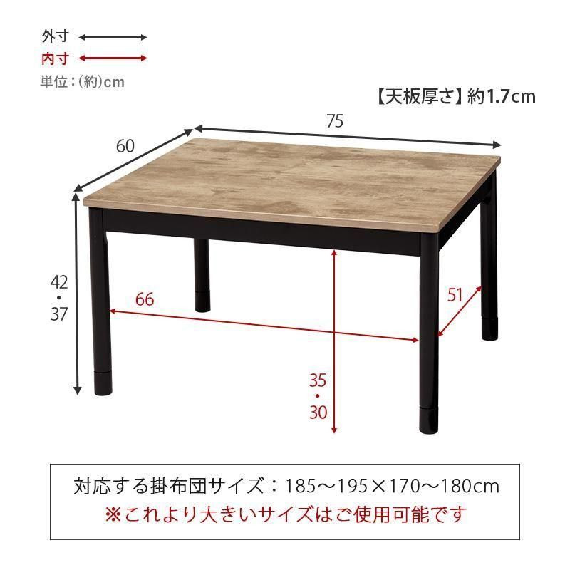 - サイズ : (約)幅75×奥行60×高さ37/42cm
