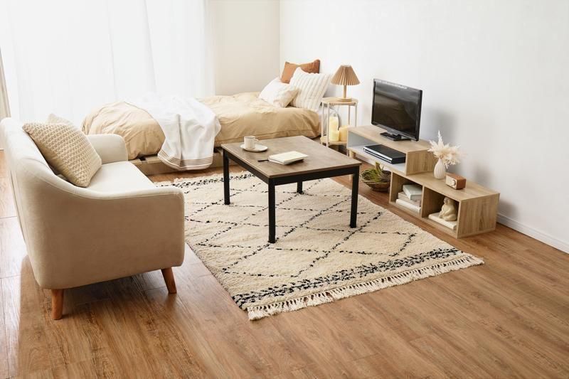 天板:プリント化粧繊維板、脚部:ラバーウッド