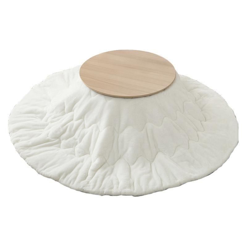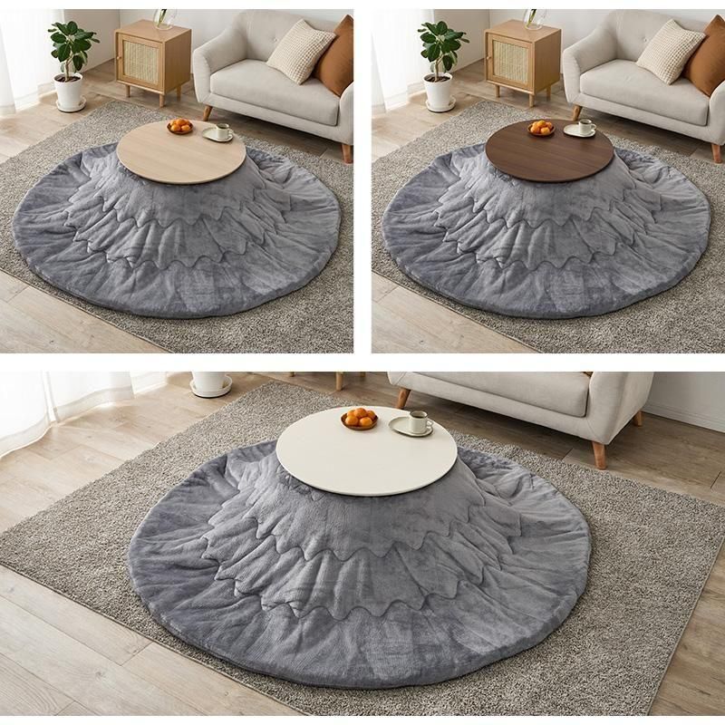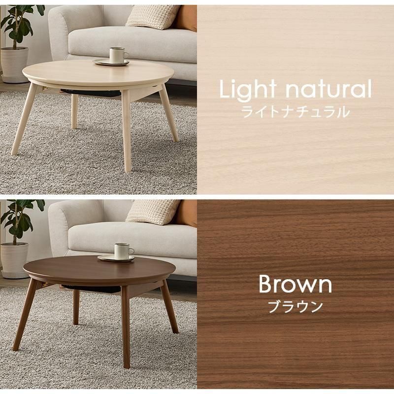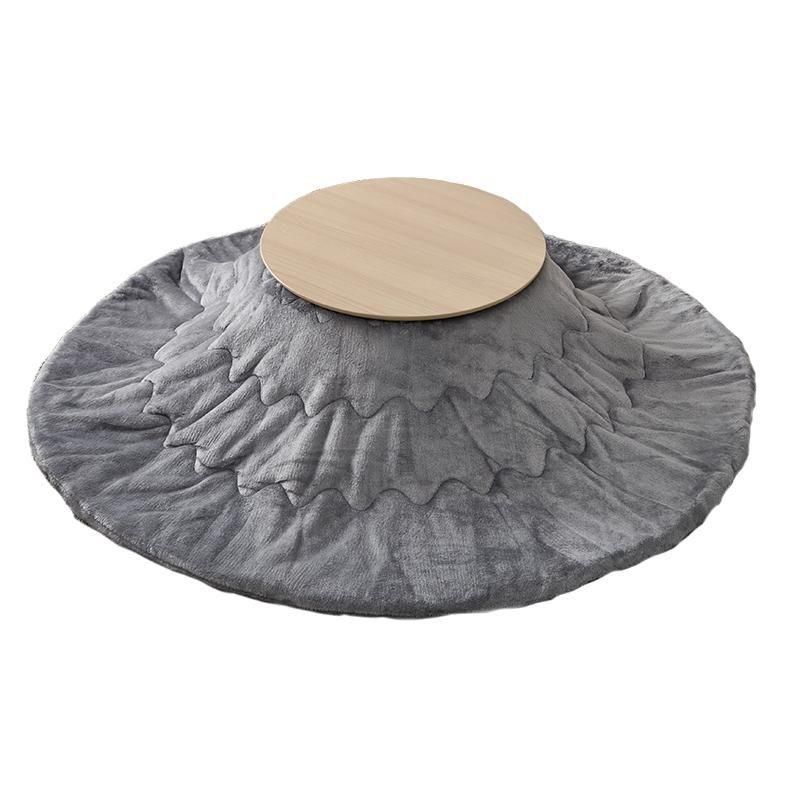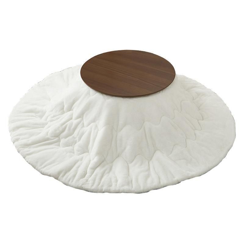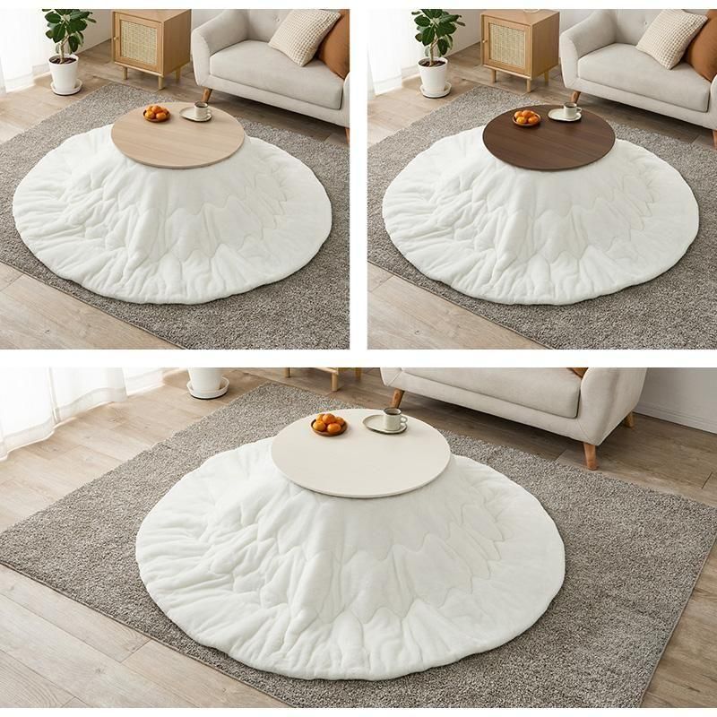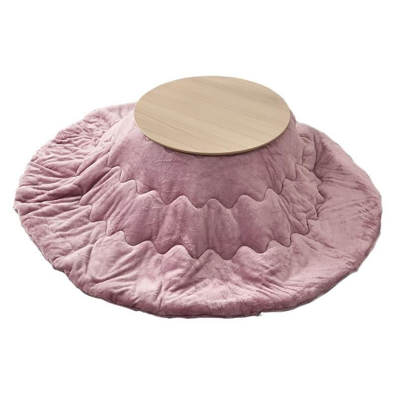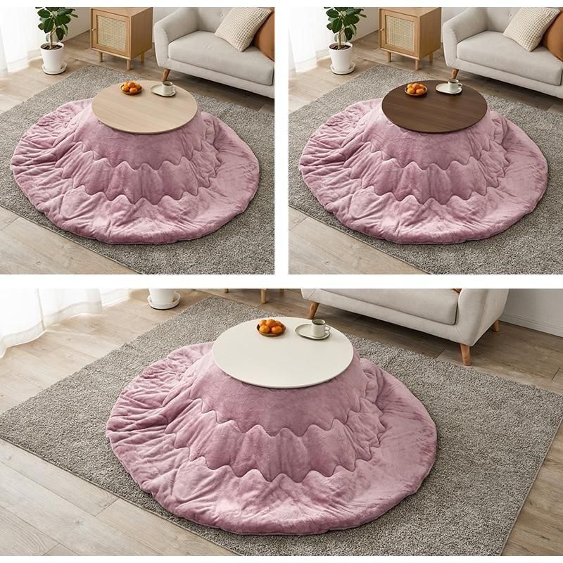 まるくてかわいいフォルムが特徴の丸型こたつ。コンパクトに収納できる折れ脚タイプ。とろけるような肌触りのシンプルな掛け布団セット