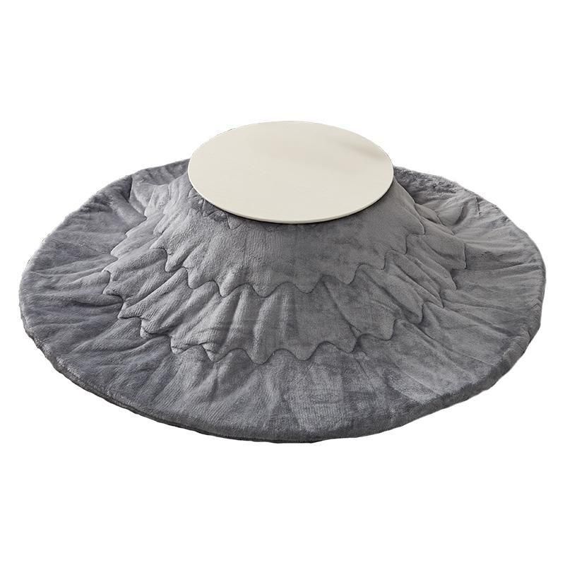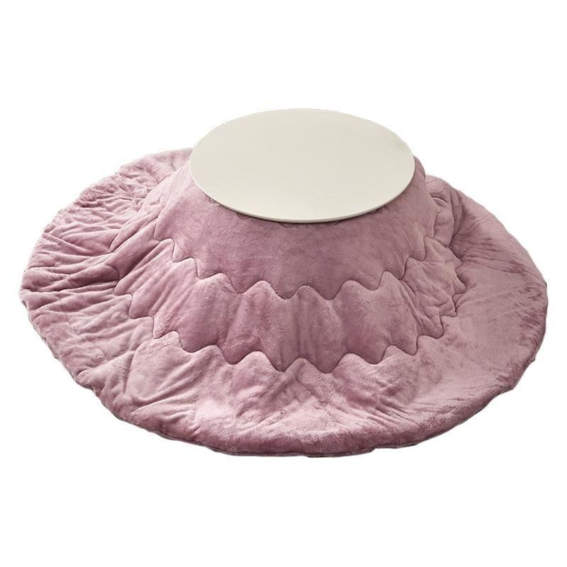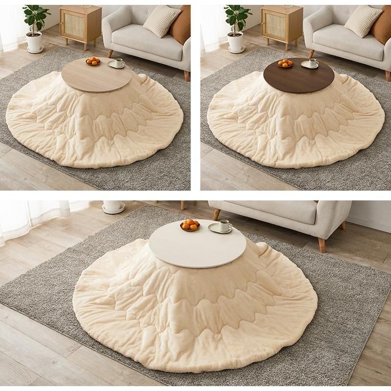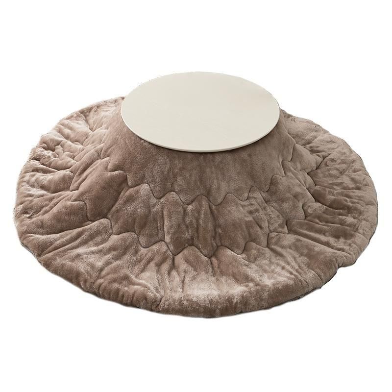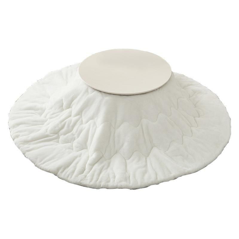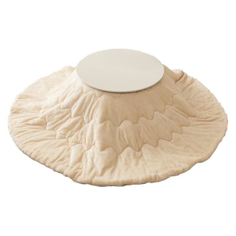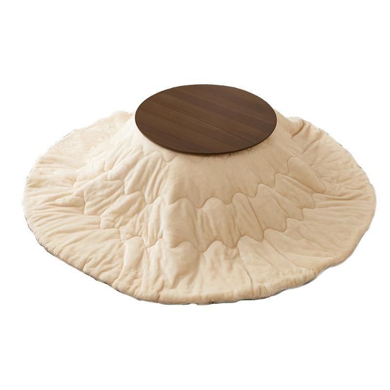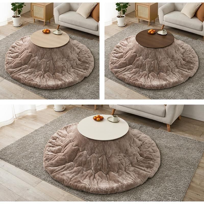 まるくてかわいいフォルムが特徴の丸型こたつ。コンパクトに収納できる折れ脚タイプ。とろけるような肌触りのシンプルな掛け布団セット