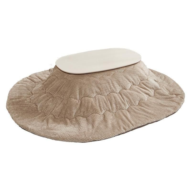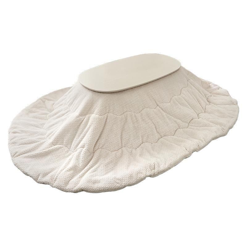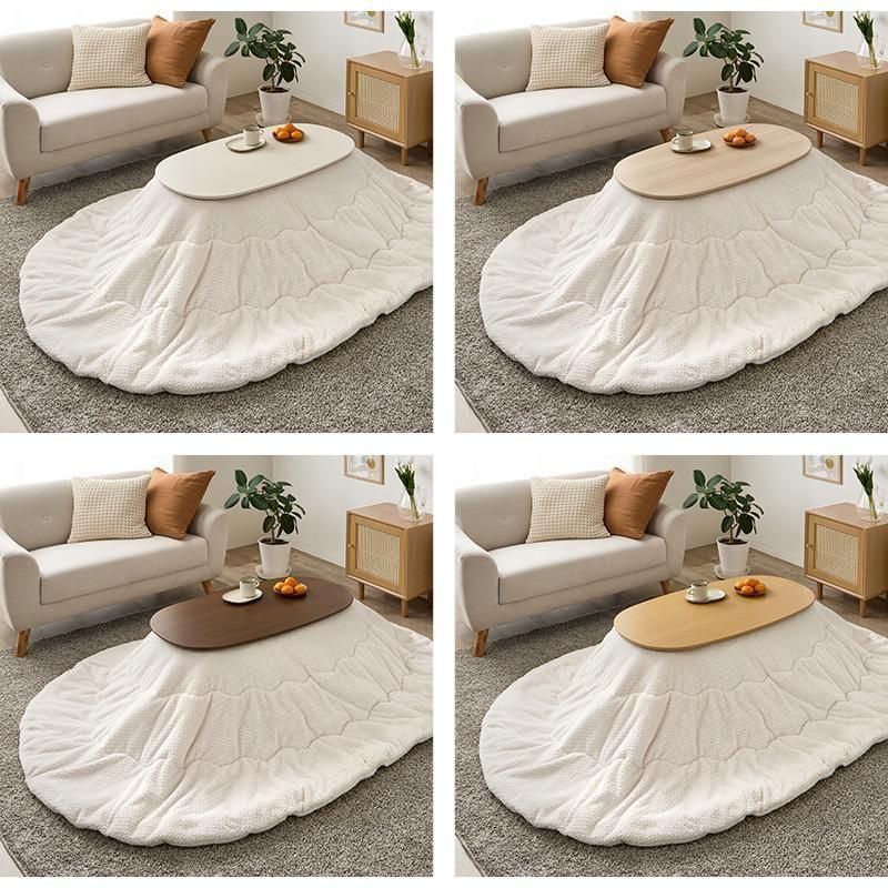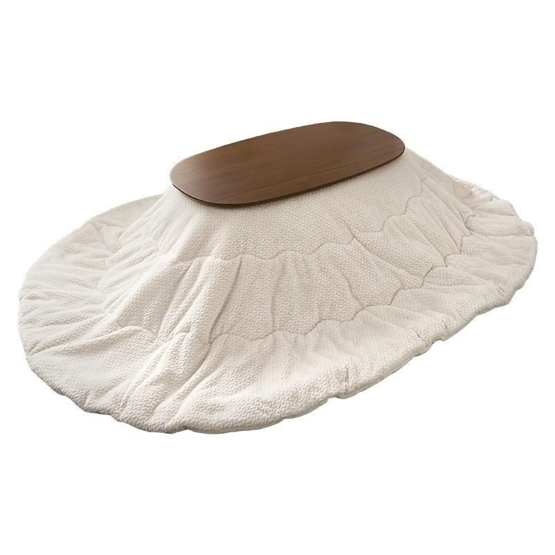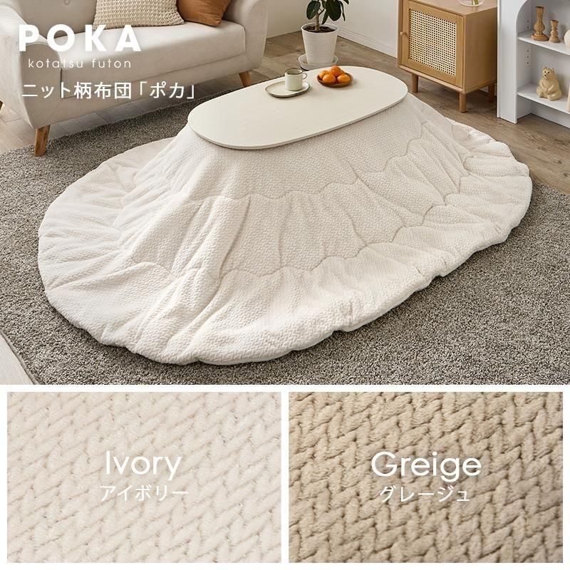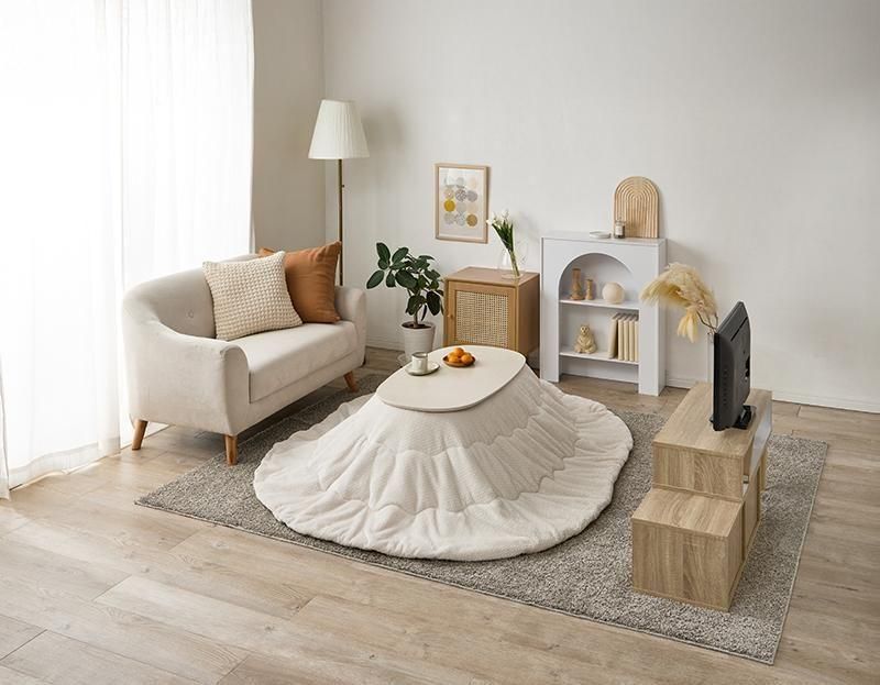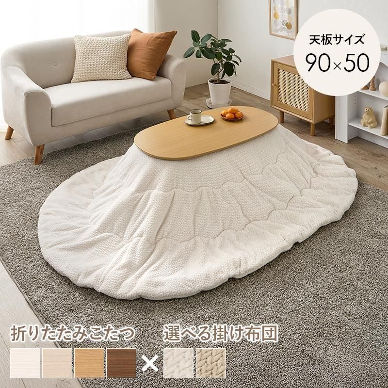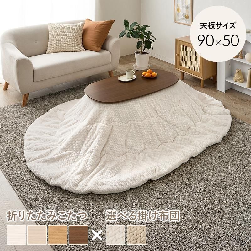 一人暮らしに最適なコンパクトサイズの折れ脚こたつテーブル。立体感のあるニット柄の掛け布団セット