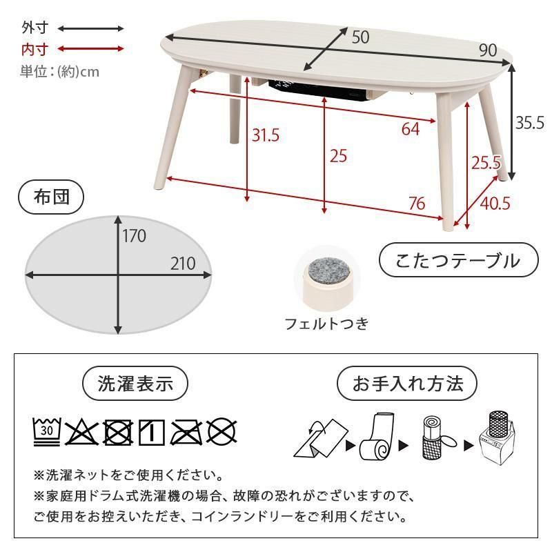 - サイズ : こたつ:(約)幅90×奥行50×高さ35.5cm、掛ふとん:(約)210×170cm