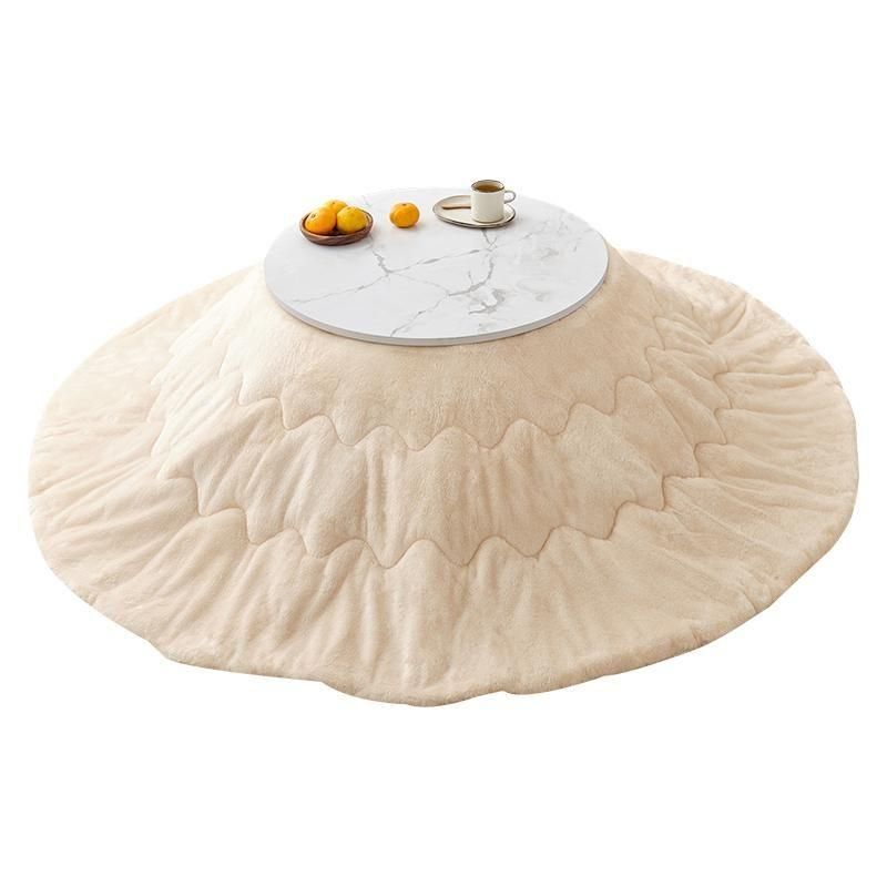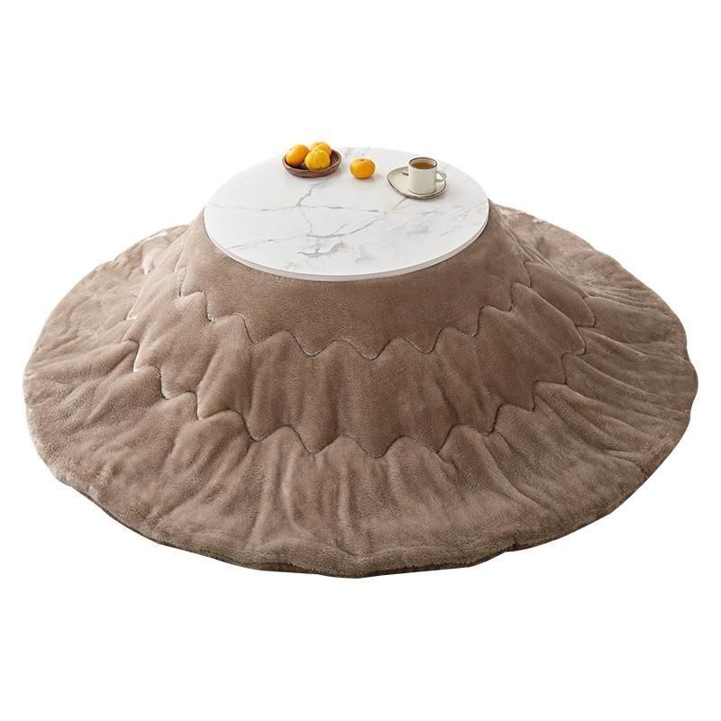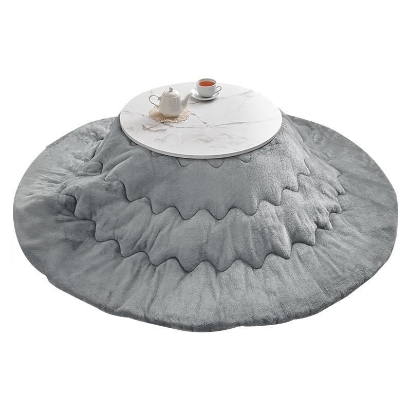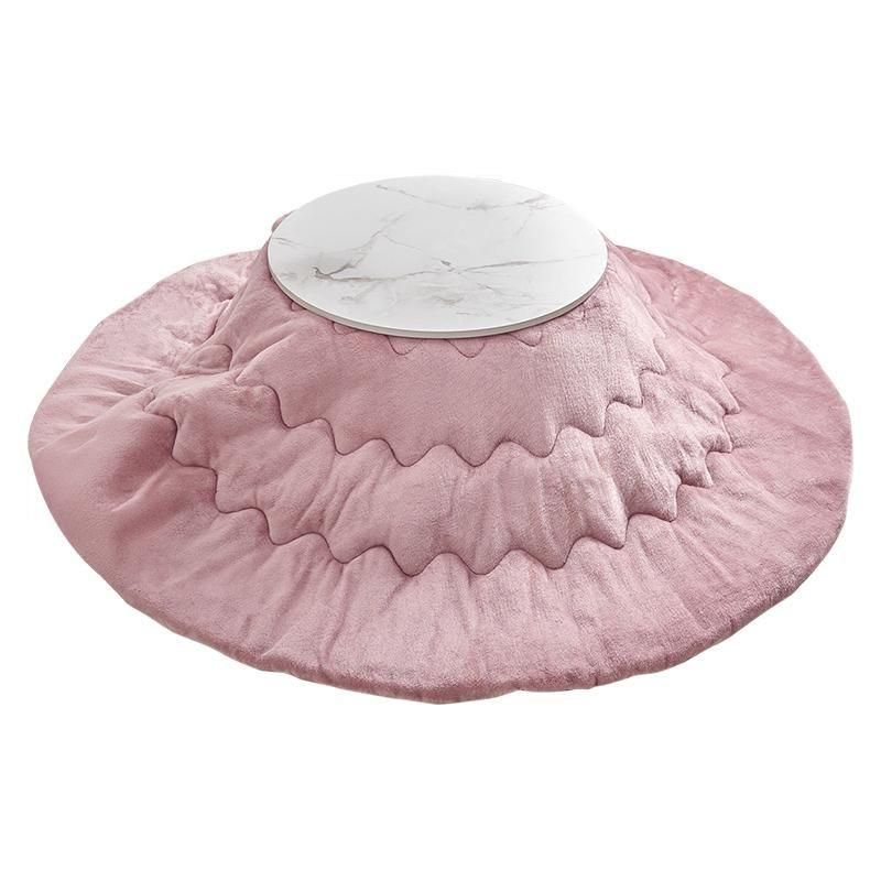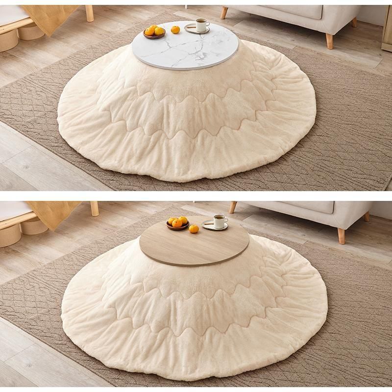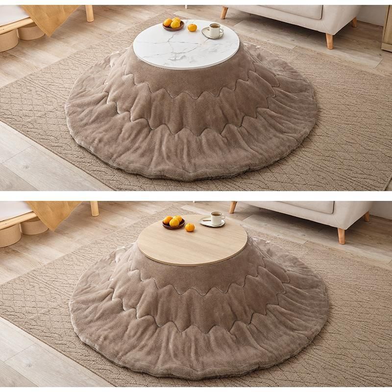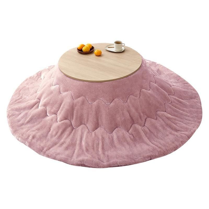 柔らかい印象を与える丸形天板のおしゃれなコンパクトこたつ。とろけるような肌触りのシンプルな掛け布団セット