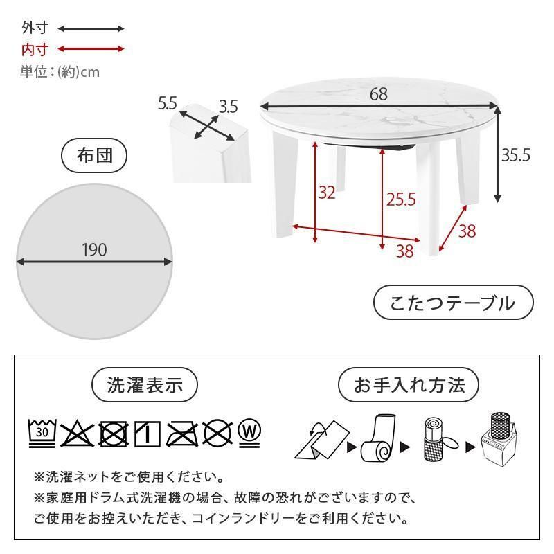 • サイズ : こたつ:(約)幅68×奥行68×高さ35.5cm、掛けふとん:φ190cm
