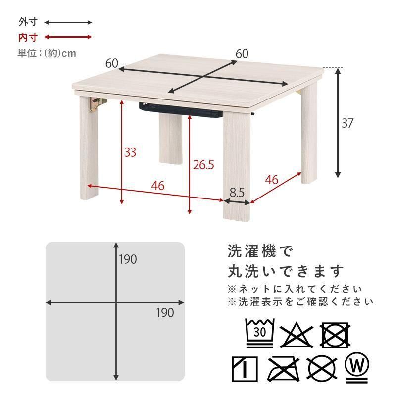 • サイズ : こたつ:(約)幅60×奥行60×高さ37cm、掛ふとん:(約)190×190cm