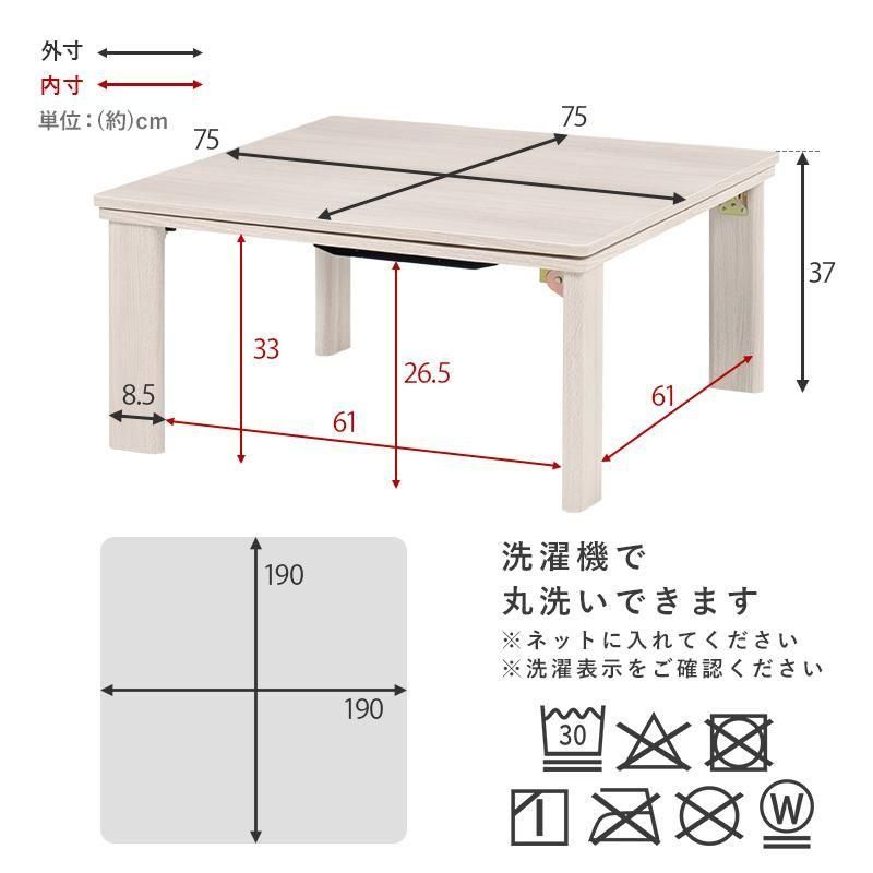 - サイズ : こたつ:(約)幅75×奥行75×高さ37cm、掛ふとん:(約)190×190cm