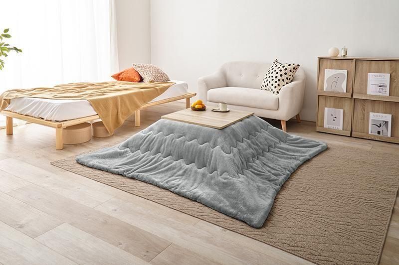 シンプルなデザインで天板リバーシブル、収納に便利な折れ脚コタツ。とろけるような肌触りのシンプルな掛け布団セット