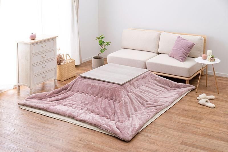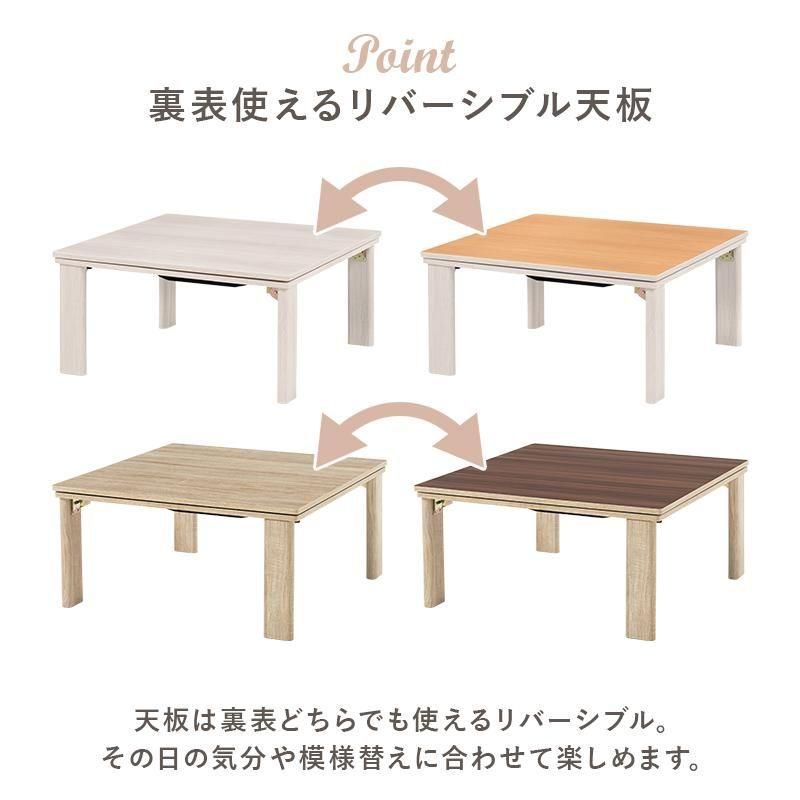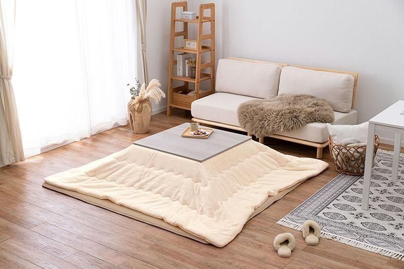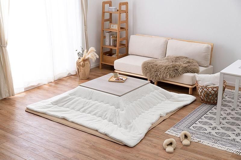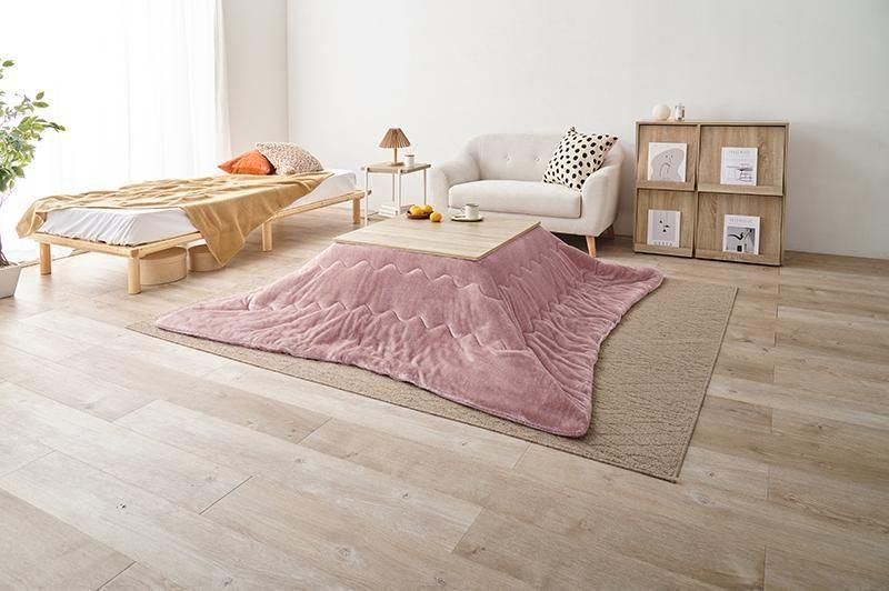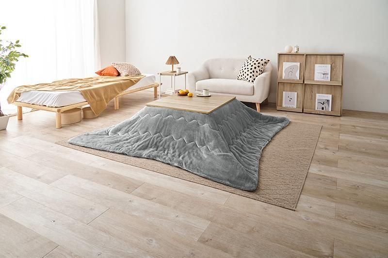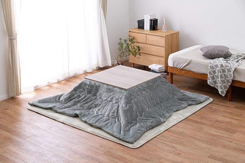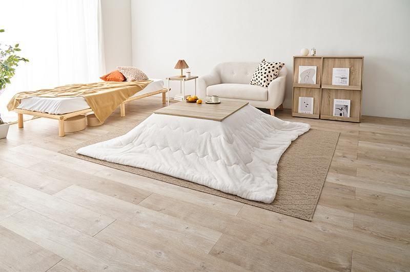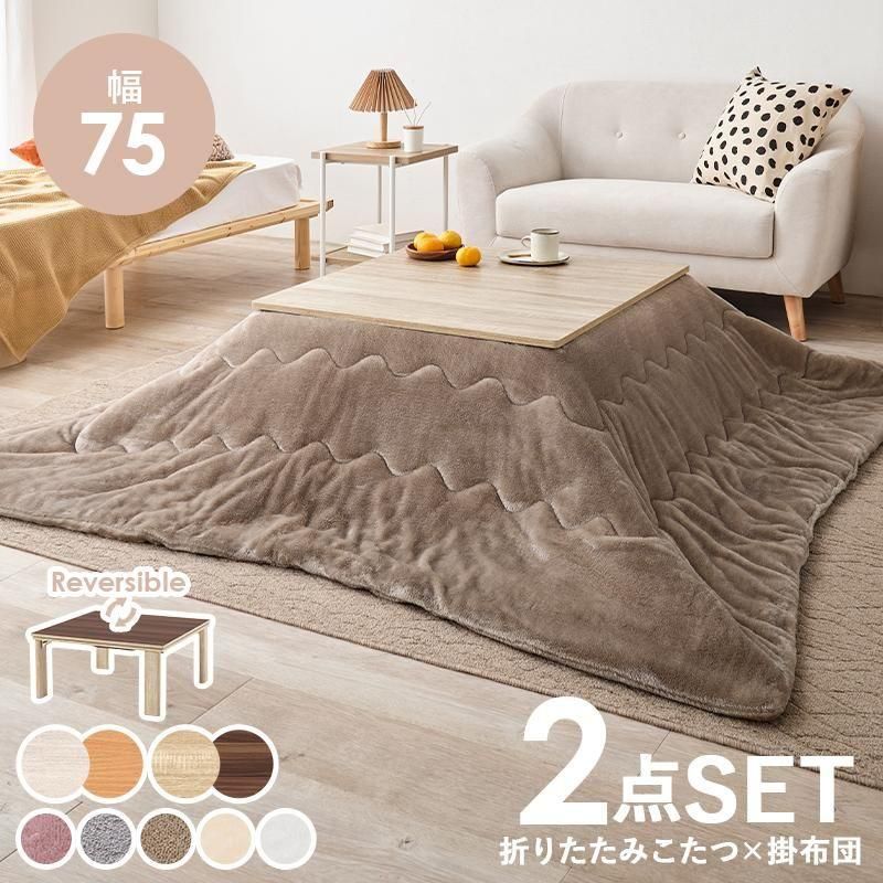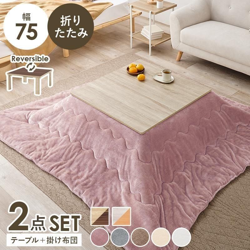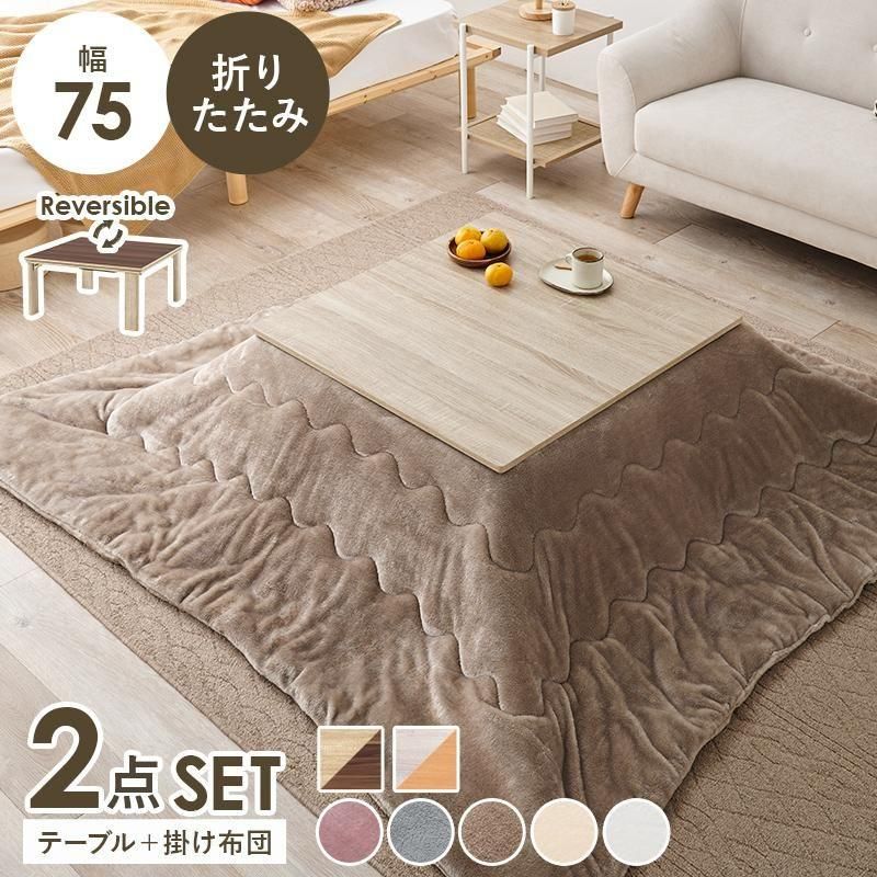 シンプルなデザインで天板リバーシブル、収納に便利な折れ脚コタツ。とろけるような肌触りのシンプルな掛け布団セット