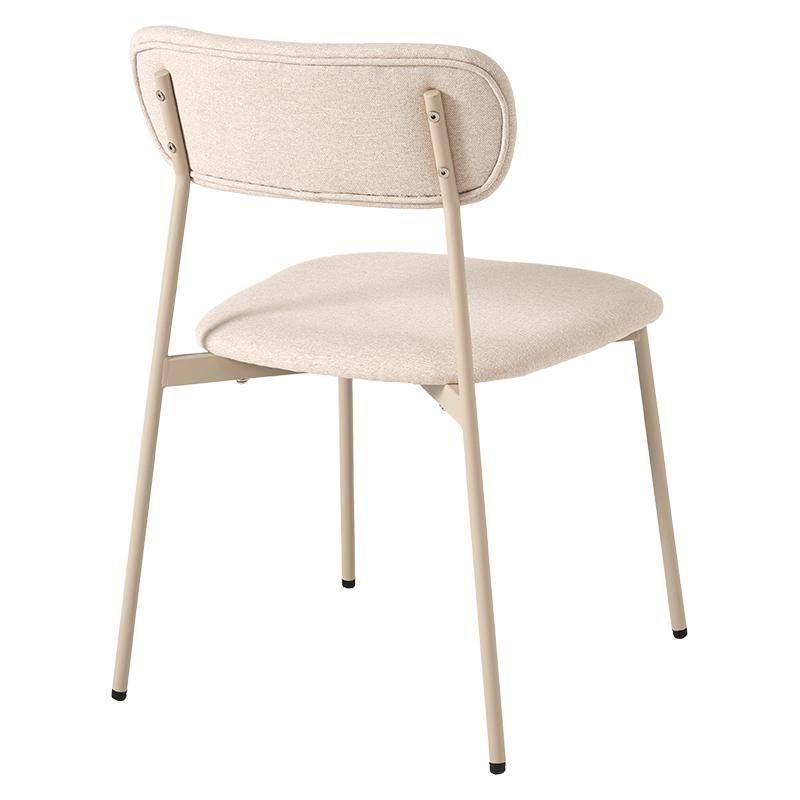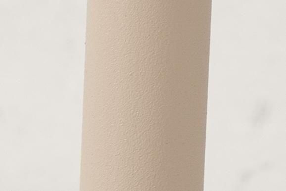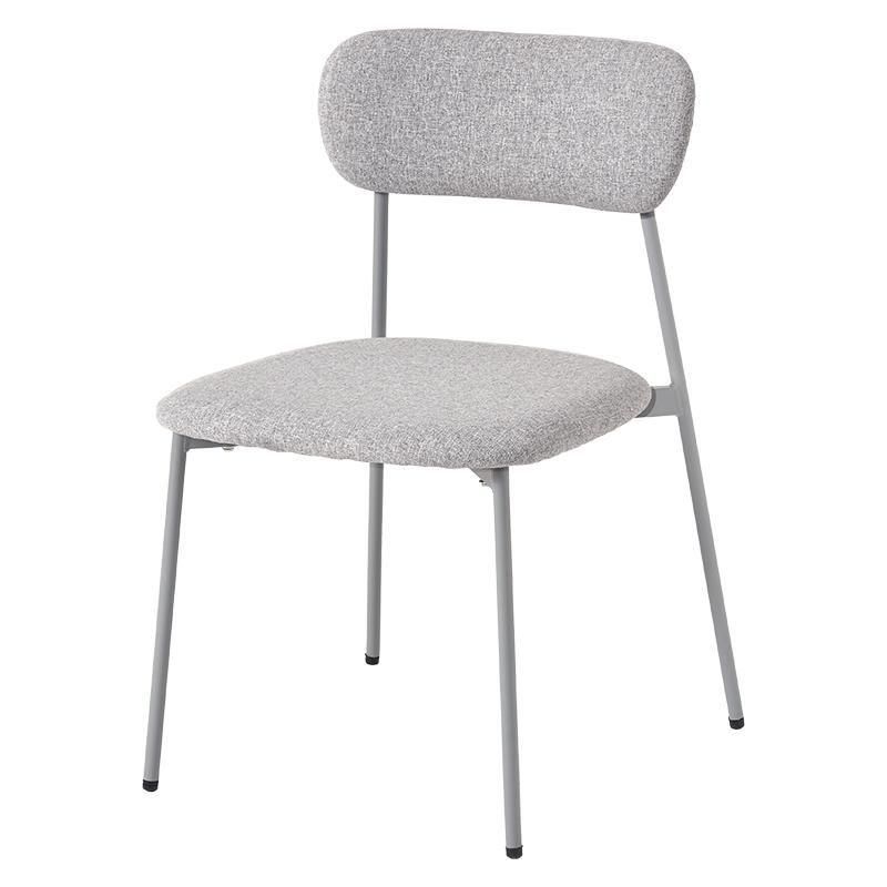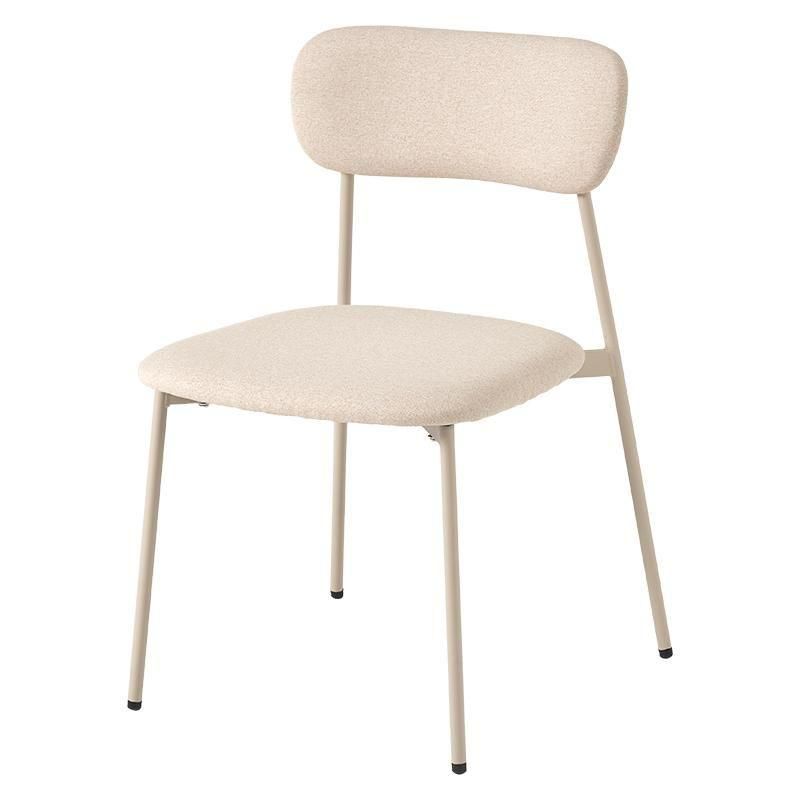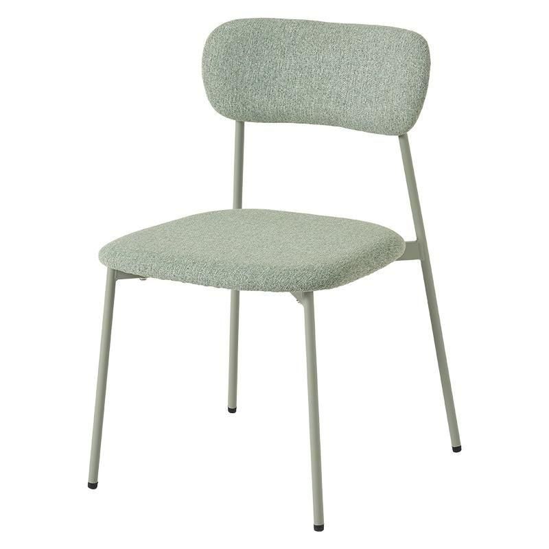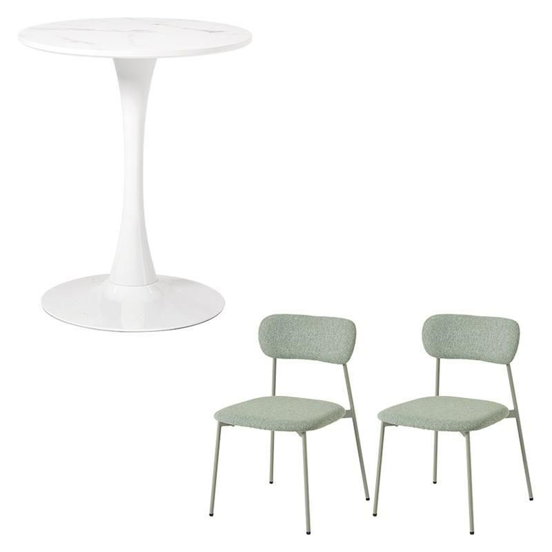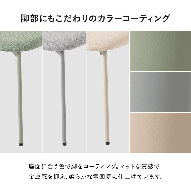 滑らかな曲線が美しいスッキリとした1本脚の円形テーブルに、くすみカラーと丸いフォルムがかわいいデザインのチェアを合わせました。