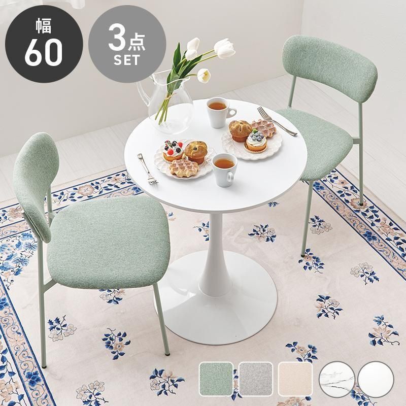 • サイズ : テーブル:(約)幅60×奥行60×高さ73cm、チェア:(約)幅45×奥行49.5×高さ72.5×座面高42.5cm