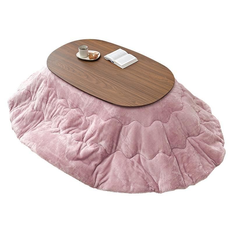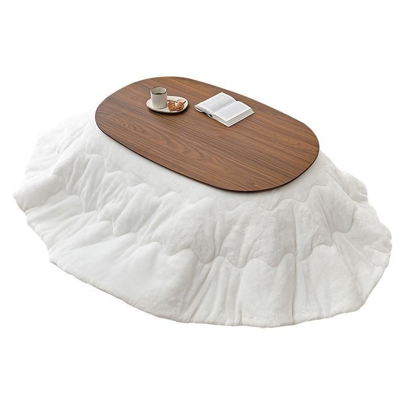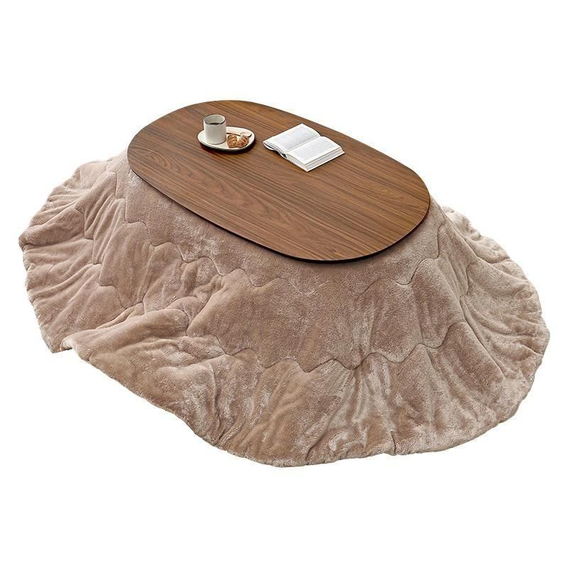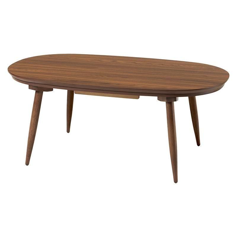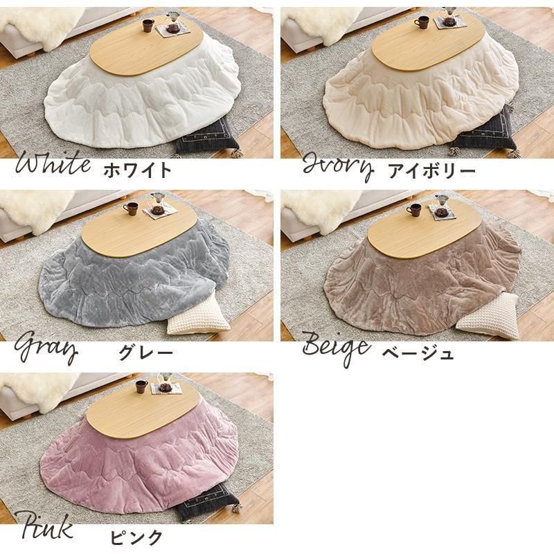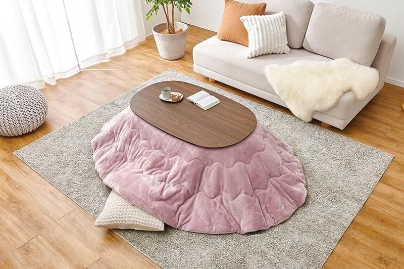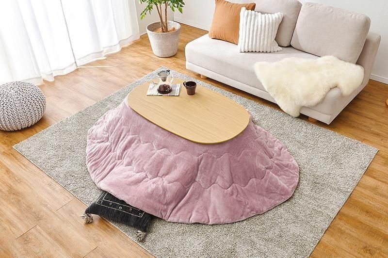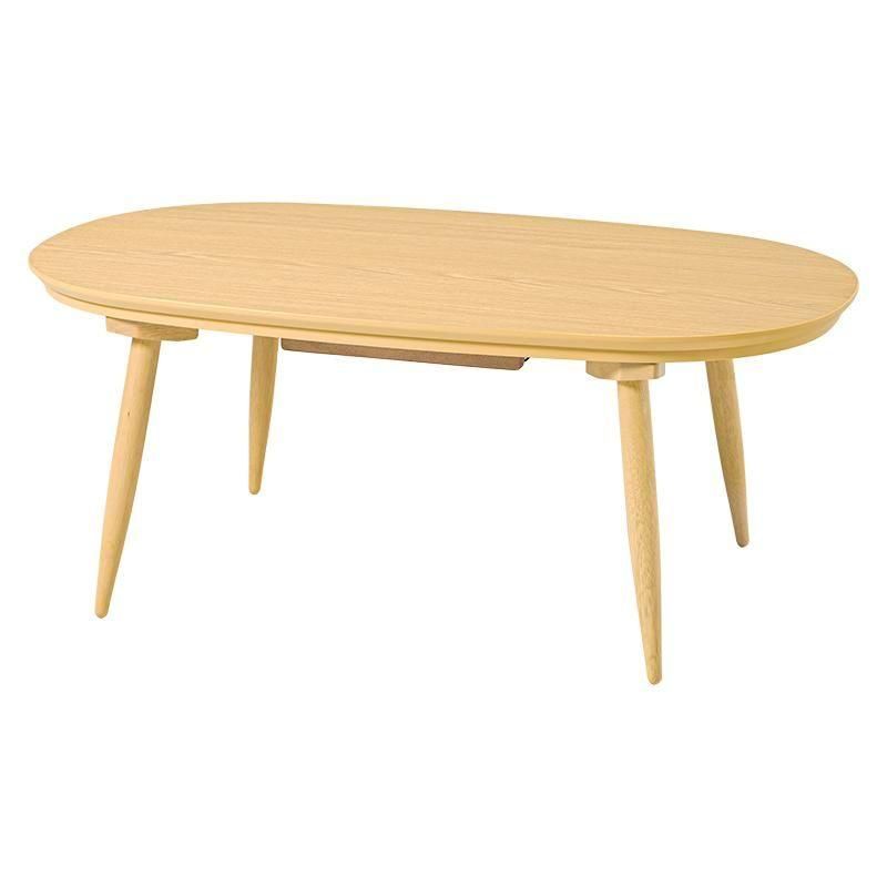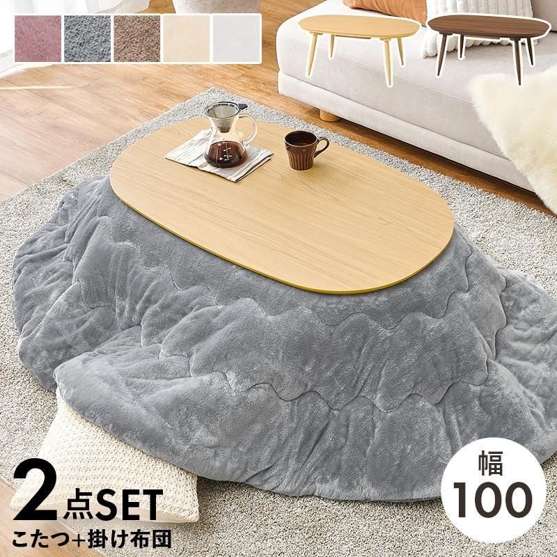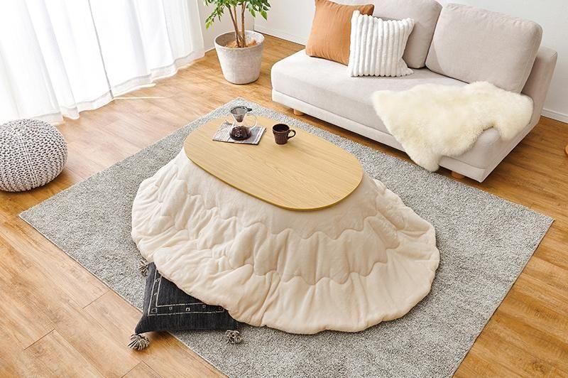 あたたかみのある木目調のナチュラルデザイン。丸みが美しいオーバル型の天板にシャープな脚を合わせたこたつテーブルととろけるような肌触りのシンプルな掛け布団セット