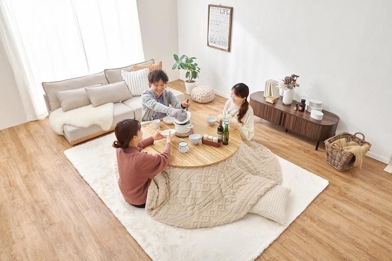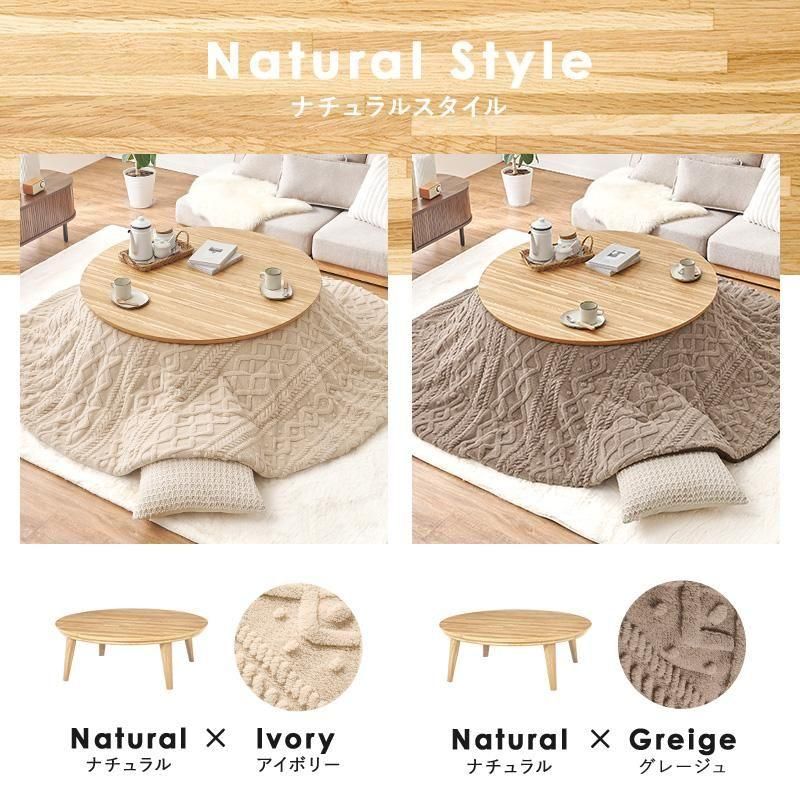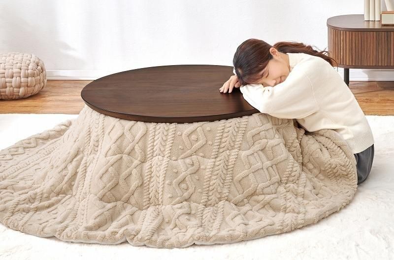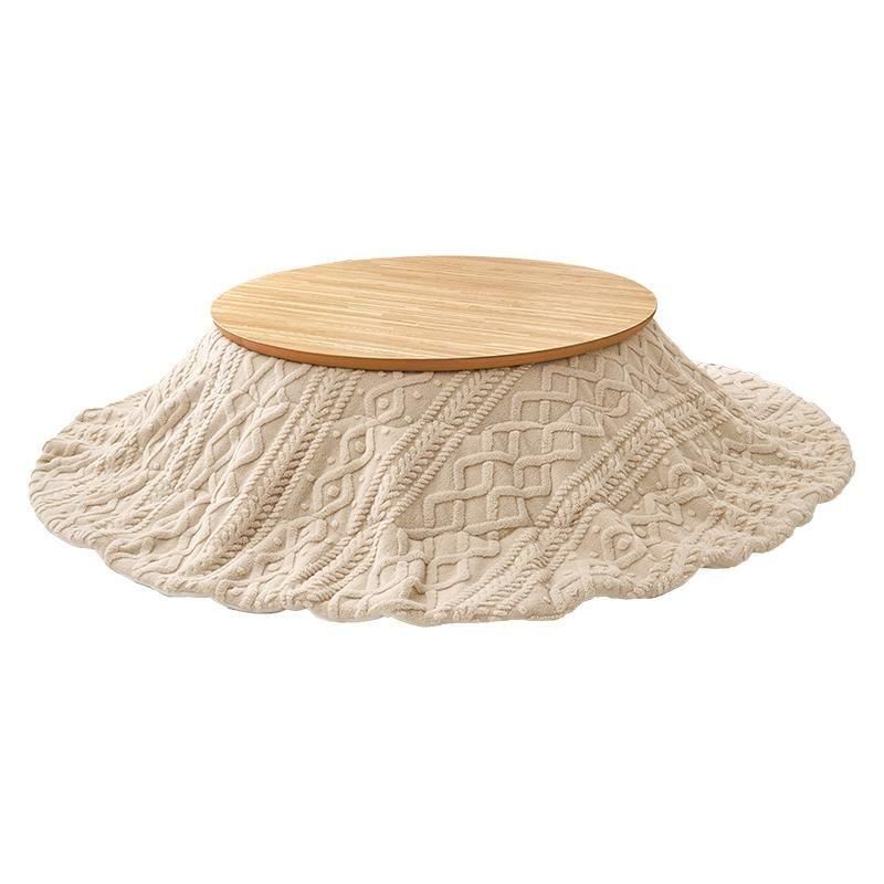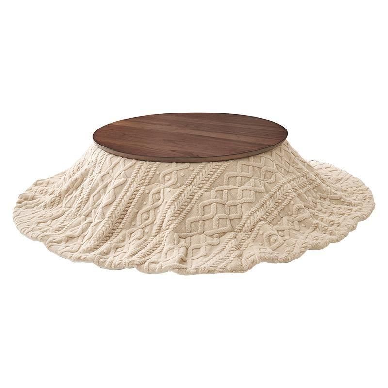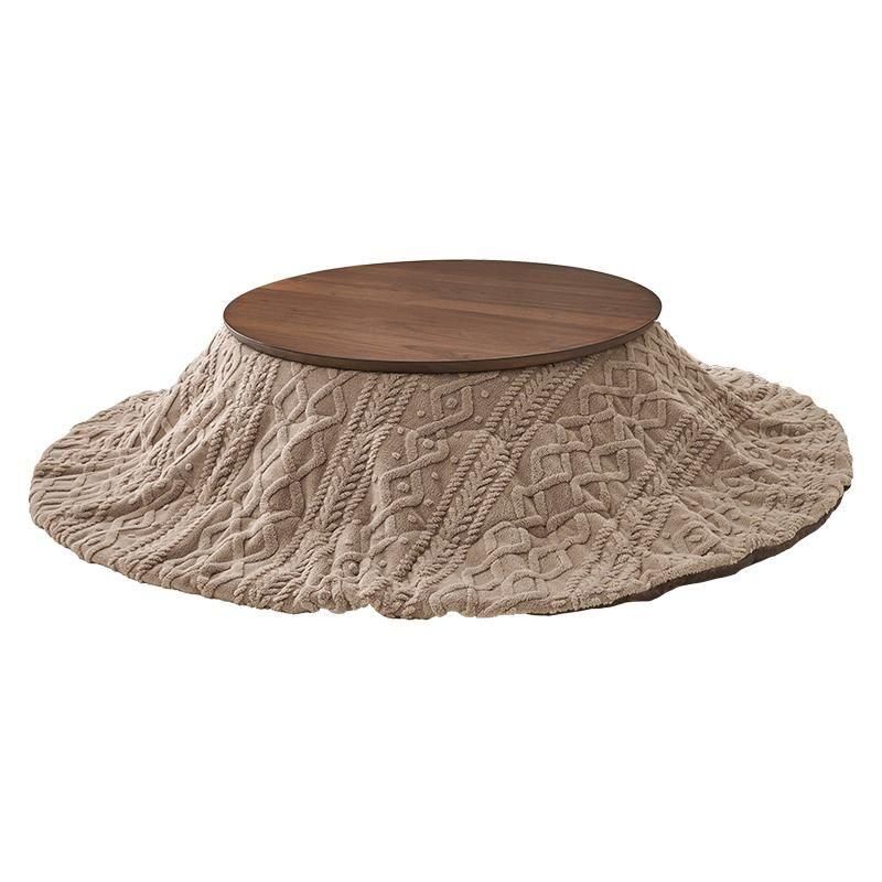 表情豊かな天然木突板を使用した洗練されたデザインの円形こたつです。セーターのような立体的なデザインがおしゃれな掛け布団セット