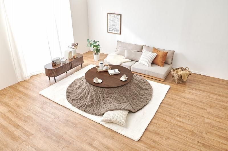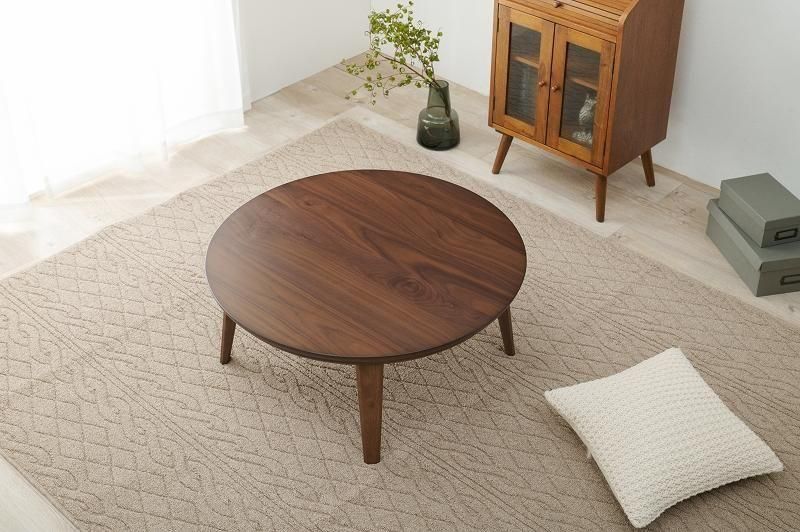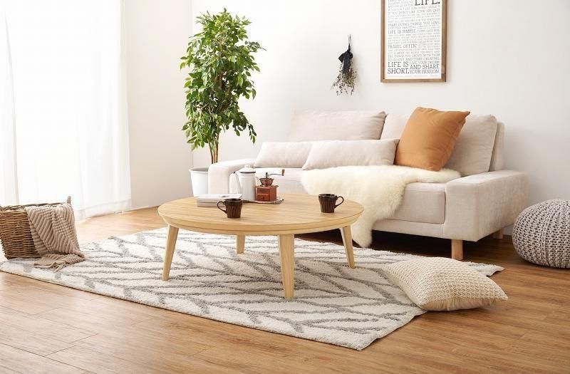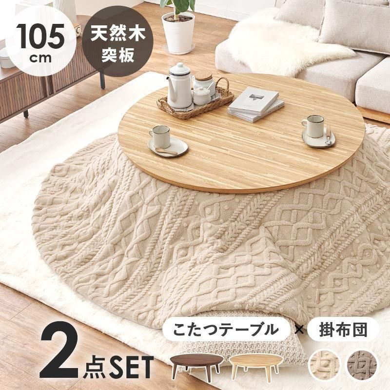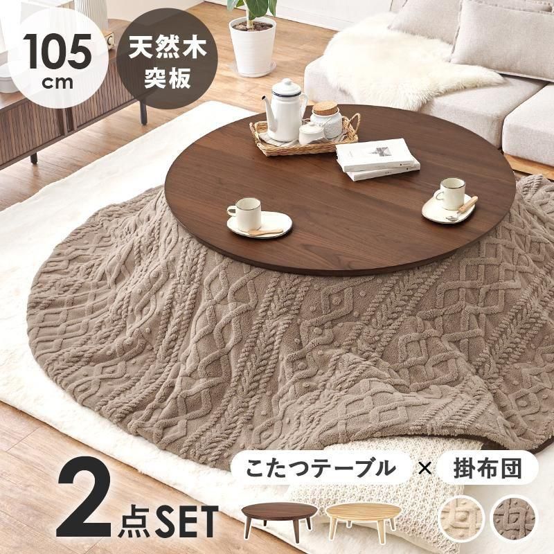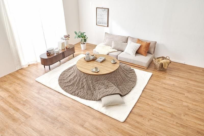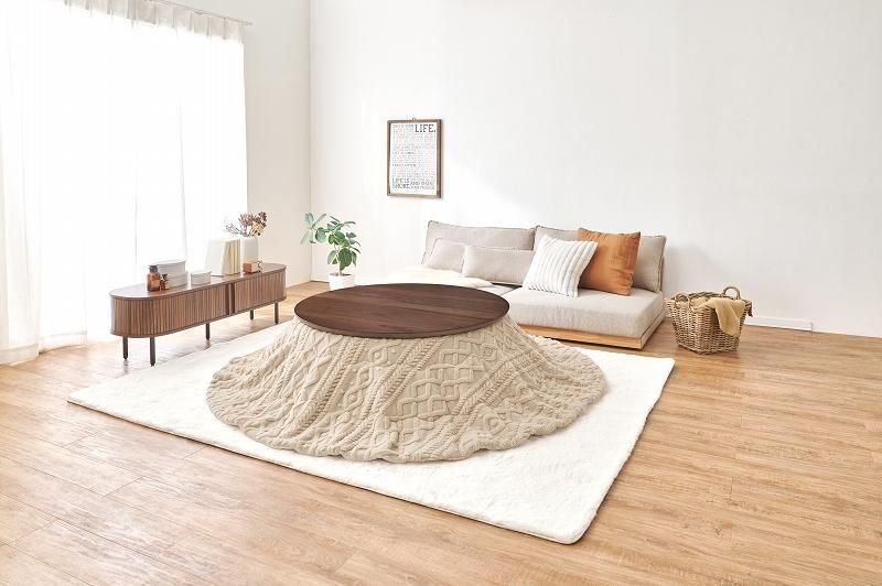 表情豊かな天然木突板を使用した洗練されたデザインの円形こたつです。セーターのような立体的なデザインがおしゃれな掛け布団セット