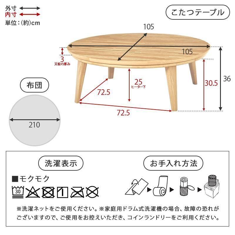 - サイズ : こたつ:(約)幅105×奥行105×高さ36cm、掛ふとん:φ210cm