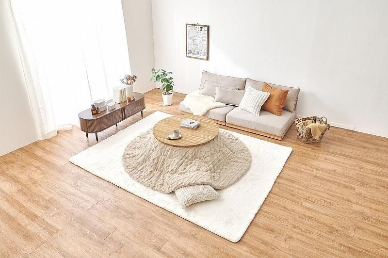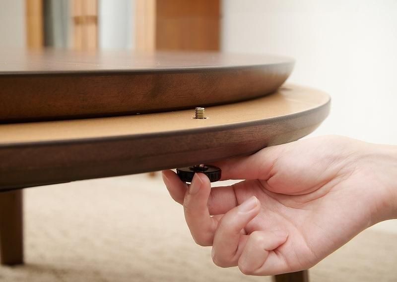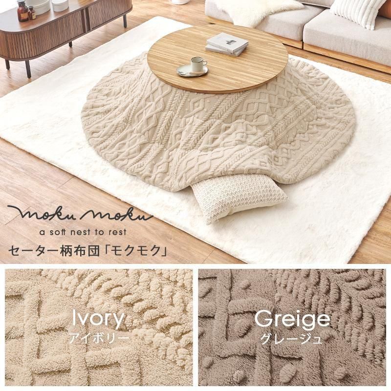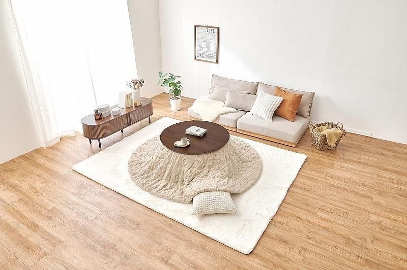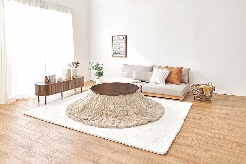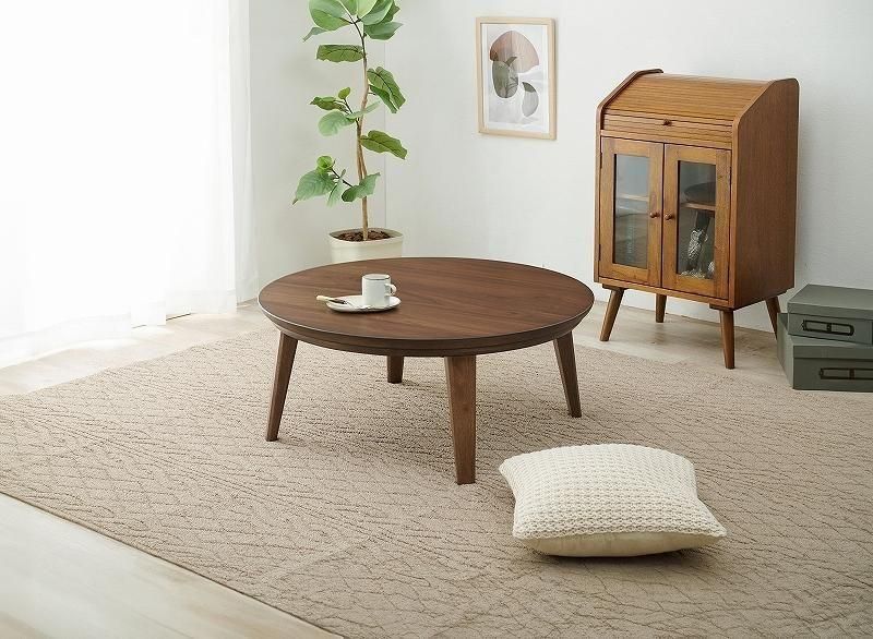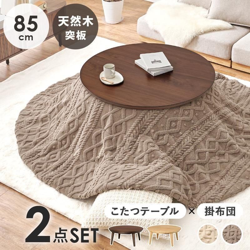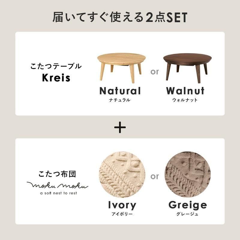 表情豊かな天然木突板を使用した洗練されたデザインの円形こたつです。セーターのような立体的なデザインがおしゃれな掛け布団セット