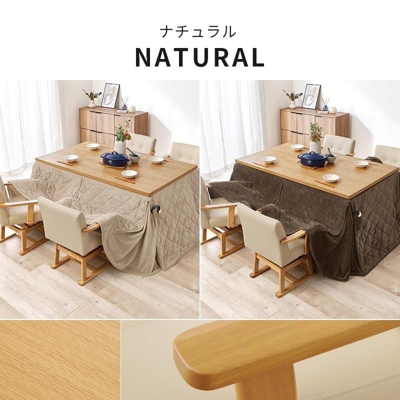 • 素材 : こたつ:<天板>天然木化粧繊維板・UV塗装<脚部>ラバーウッド、ヒーター:MHU-601E(D) 600Wハロゲンヒーター(手元コントローラー付)、ふとん:< 側地><中材>ポリエステル100%、チェア:<木部>ラバーウッド<張地>合成皮革