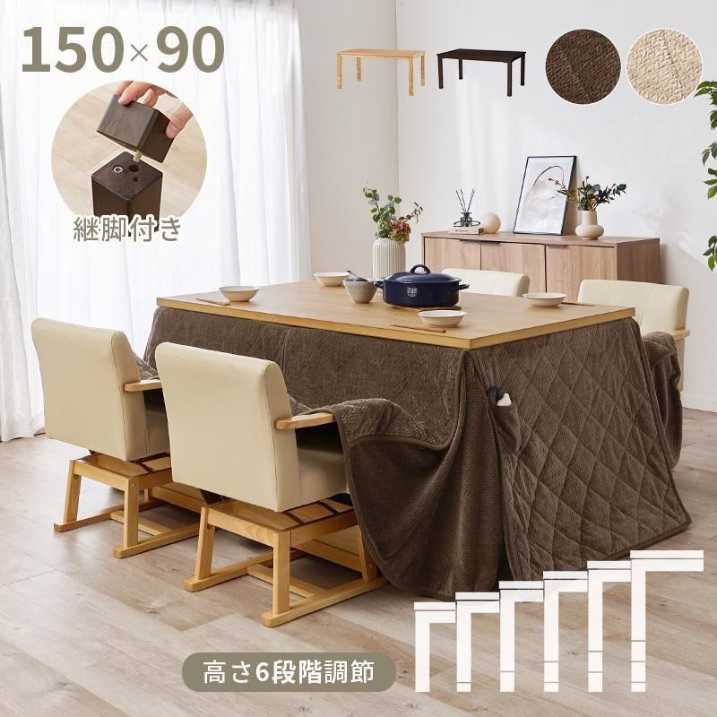• サイズ : こたつ:(約)幅150×奥行90×高さ45/50/55/60/65/70cm、ふとん:(約)幅150×奥行90×高さ70cm、チェア:(約)幅56×奥行54×高さ73.5/68.5×座面高40.5/35.5cm