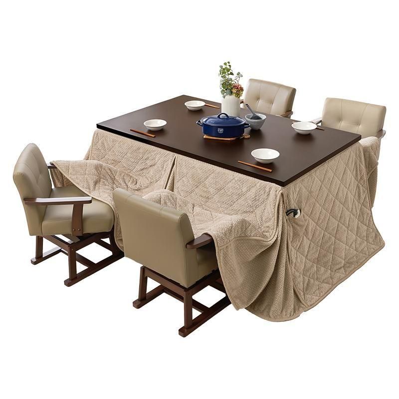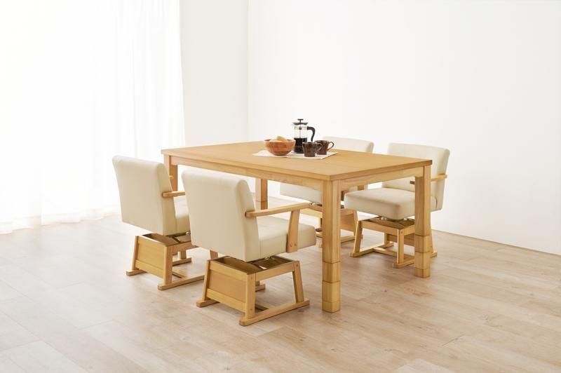 まとめて揃えられるダイニングこたつセット。ライフスタイルの変化に合わせて、テーブルの高さを6段階に変更できます。