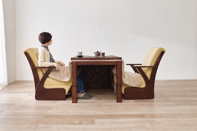 • 素材 : こたつ:<天板>天然木化粧繊維板(タモ突板・UV塗装)<脚部>ラバーウッド 、ヒーター:MHU-601E(D) 600Wハロゲン薄型温風ヒーター(手元コントローラー)、ふとん:< 側地><中材>ポリエステル100%、チェア:<フレーム>天然木<張地>合成皮革