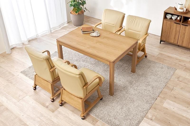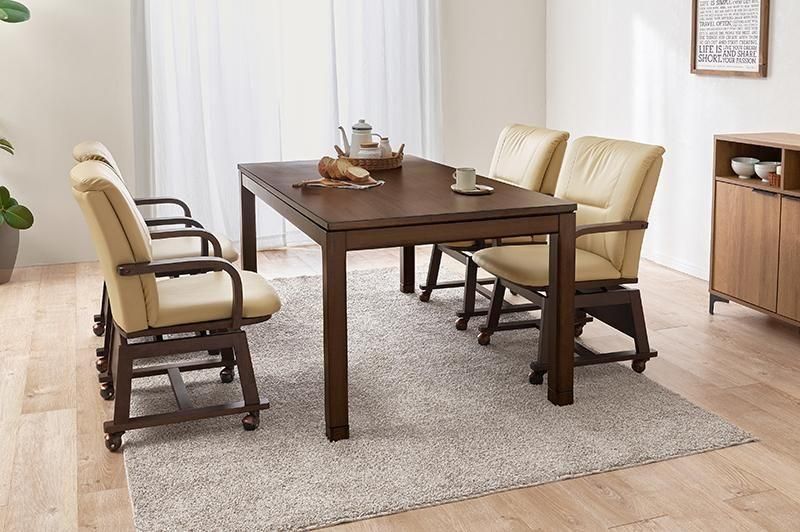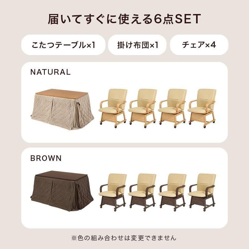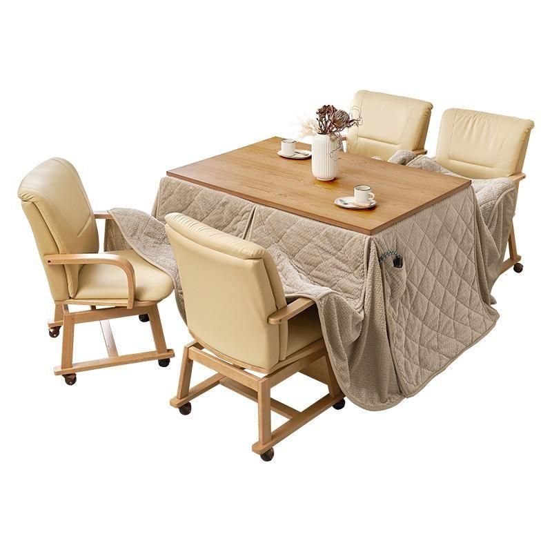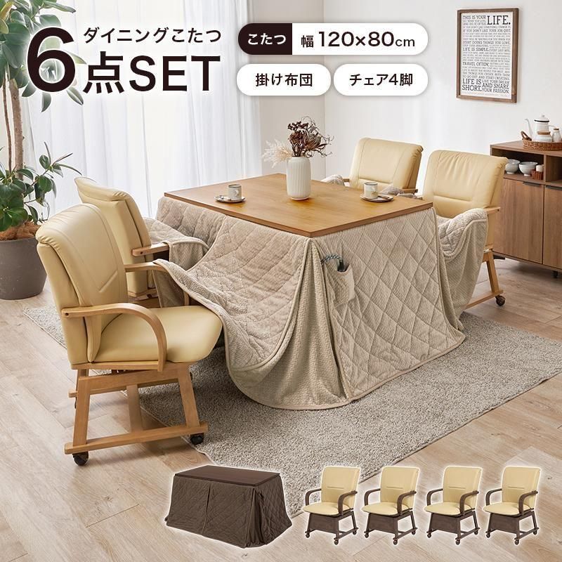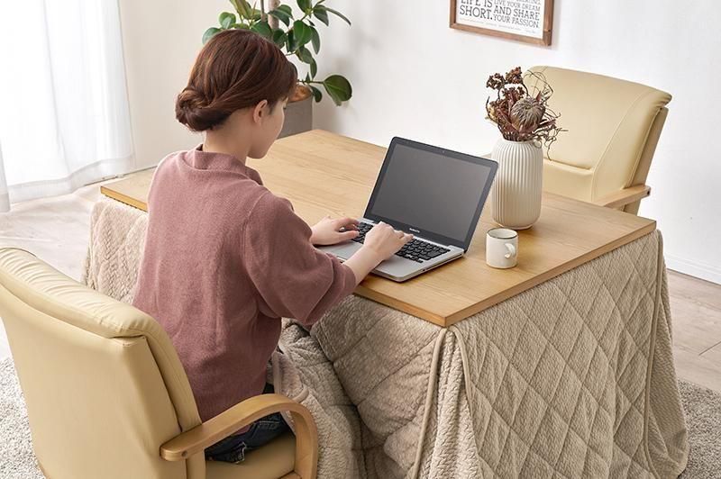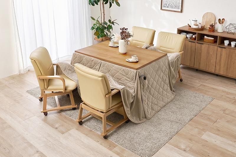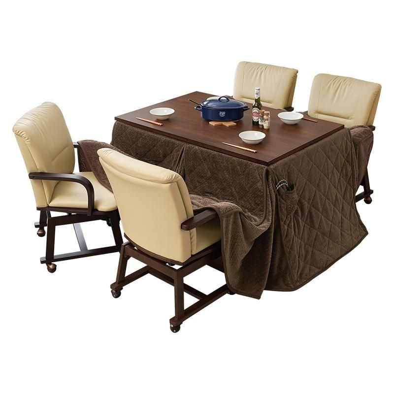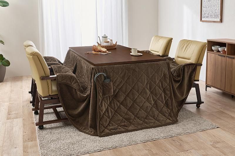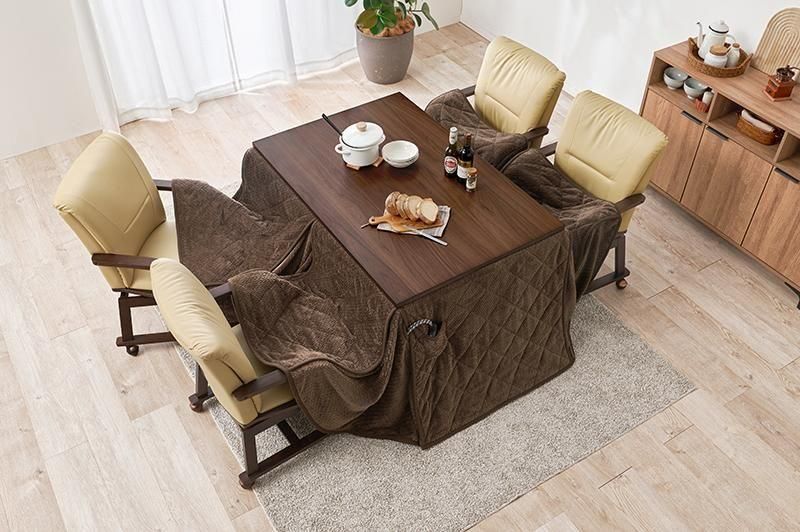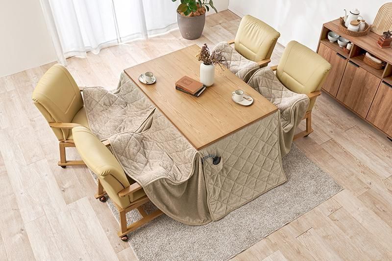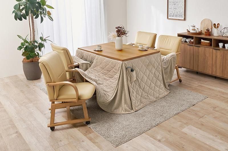 暖かく、立ち座りがしやすく、インテリアに馴染むデザインのダイニングこたつ。立体感のあるニット柄の省スペース掛け布団が付いた6点セット