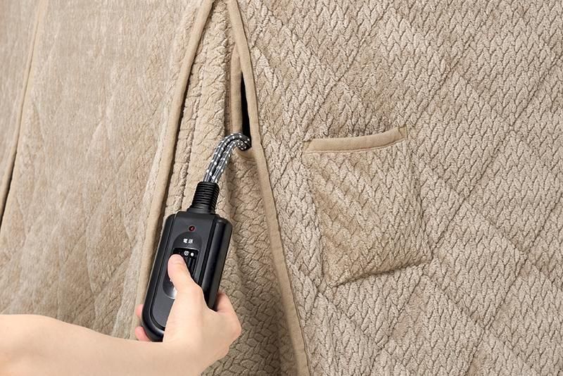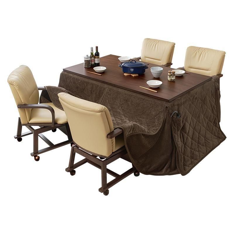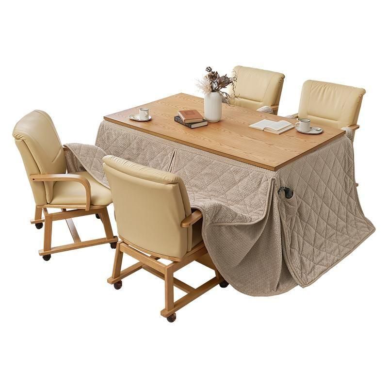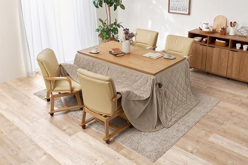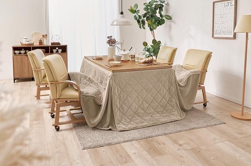 暖かく、立ち座りがしやすく、インテリアに馴染むデザインのダイニングこたつ。立体感のあるニット柄の省スペース掛け布団が付いた6点セット