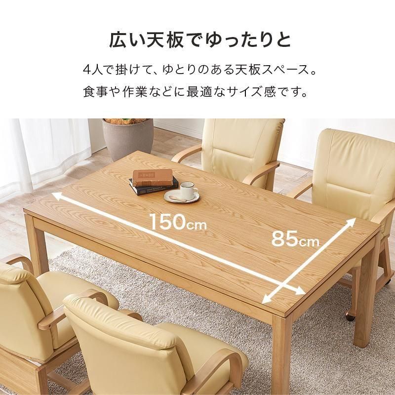 • サイズ : こたつ:(約)幅150×奥行85×高さ64/69cm、ふとん:(約)幅150×奥行90×高さ70cm、チェアー:(約)幅55×奥行62×高さ85×座面高43.5cm