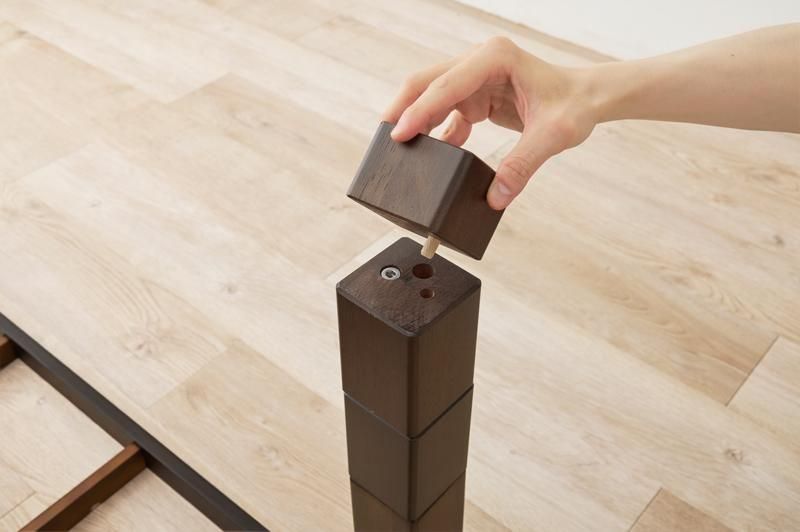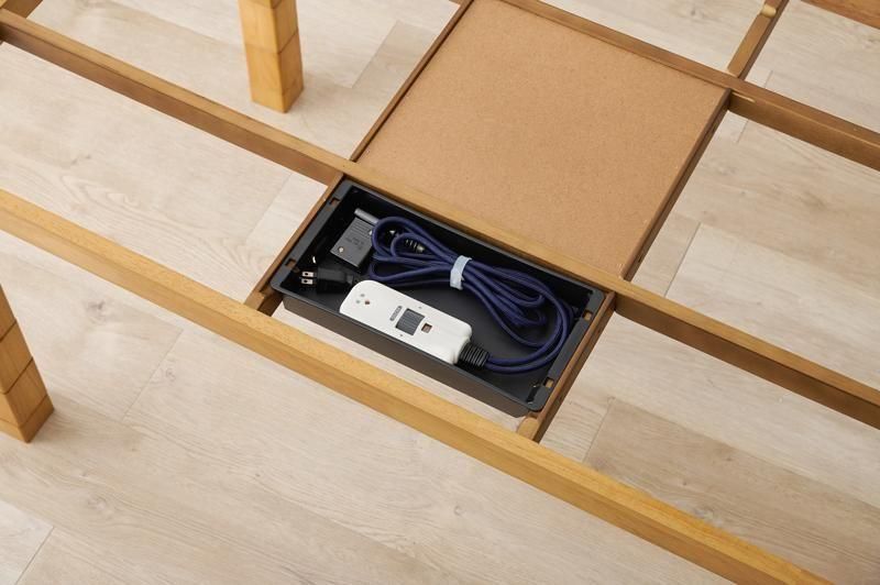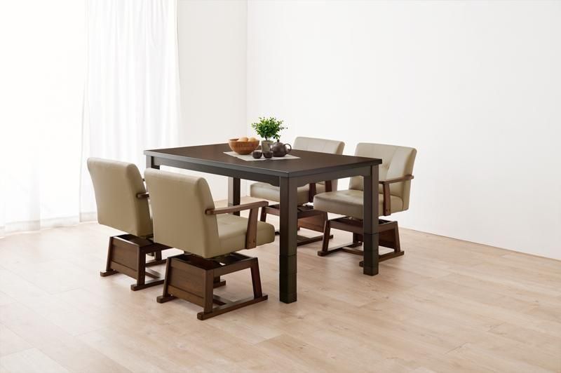 高さが6段階に変更できるこたつテーブル。ダイニングチェア、ソファなどお使いの家具に合わせた高さに変更できます。ダイニング高さでも使える省スペース掛け布団セット