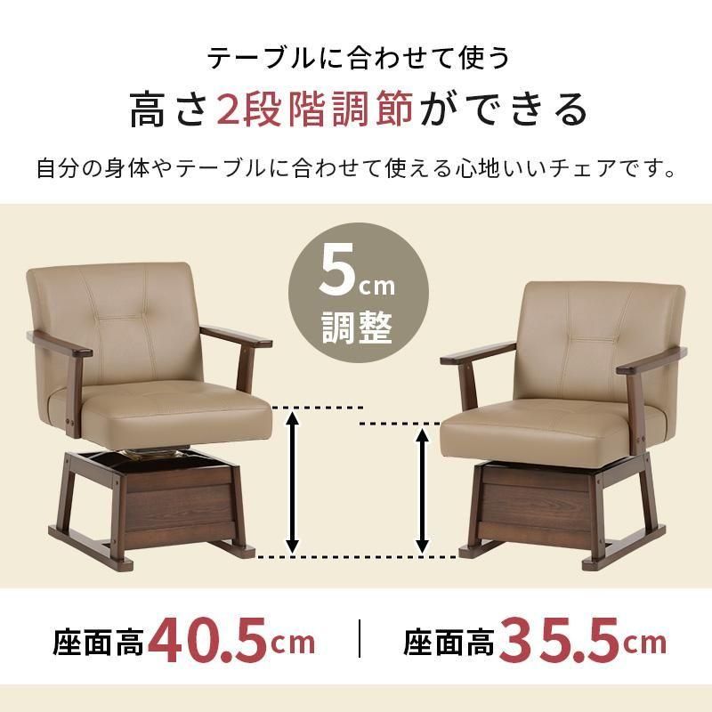 - サイズ : こたつ:(約)幅105×奥行80×高さ45/50/55/60/65/70cm、ふとん:(約)幅105×奥行80×高さ70cm、チェア:(約)幅56×奥行54×高さ73.5/68.5×座面高40.5/35.5cm