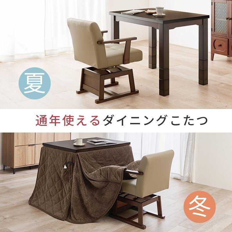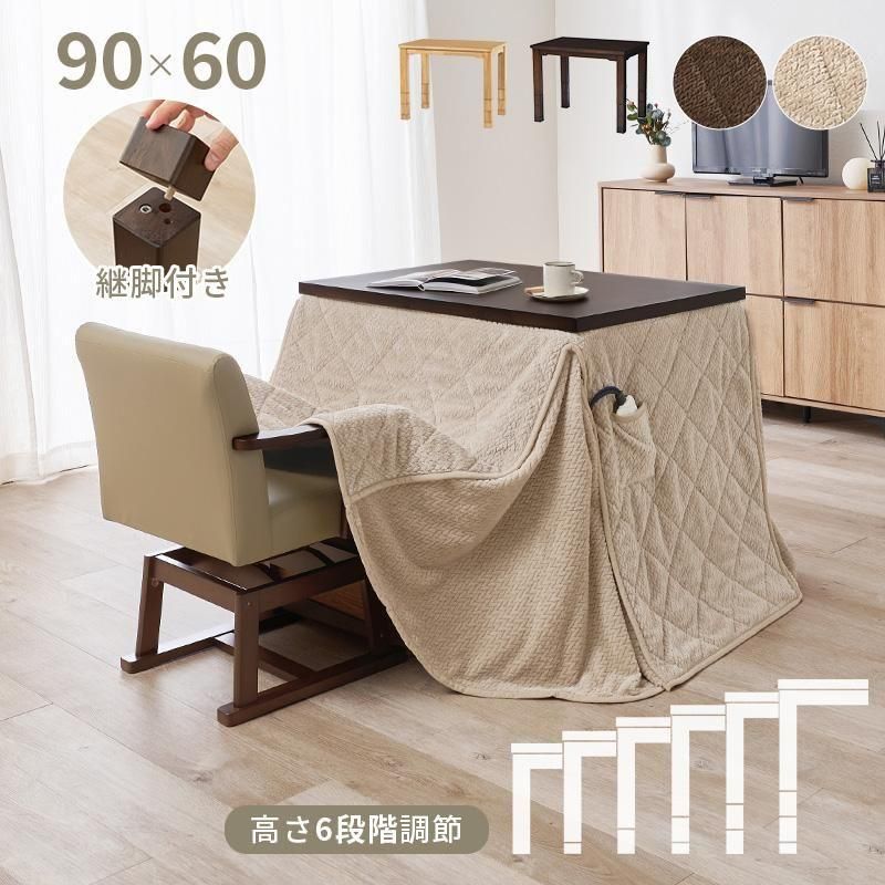 - サイズ : こたつ:(約)幅90×奥行60×高さ45/50/55/60/65/70cm、ふとん:(約)幅90×奥行60×高さ70cm、チェア:(約)幅56×奥行54×高さ73.5/68.5×座面高40.5/35.5cm