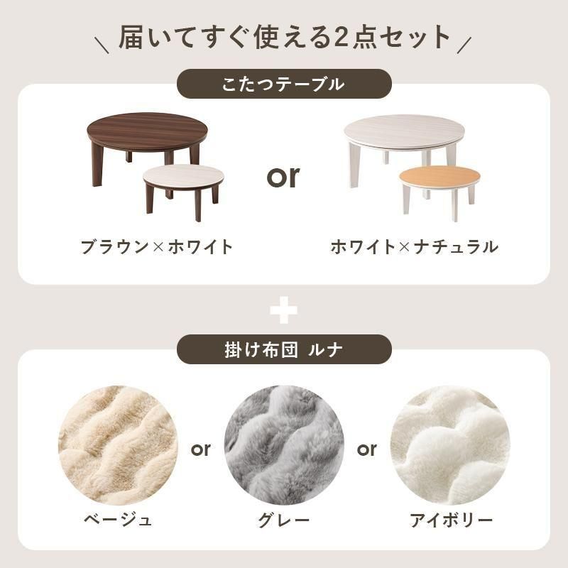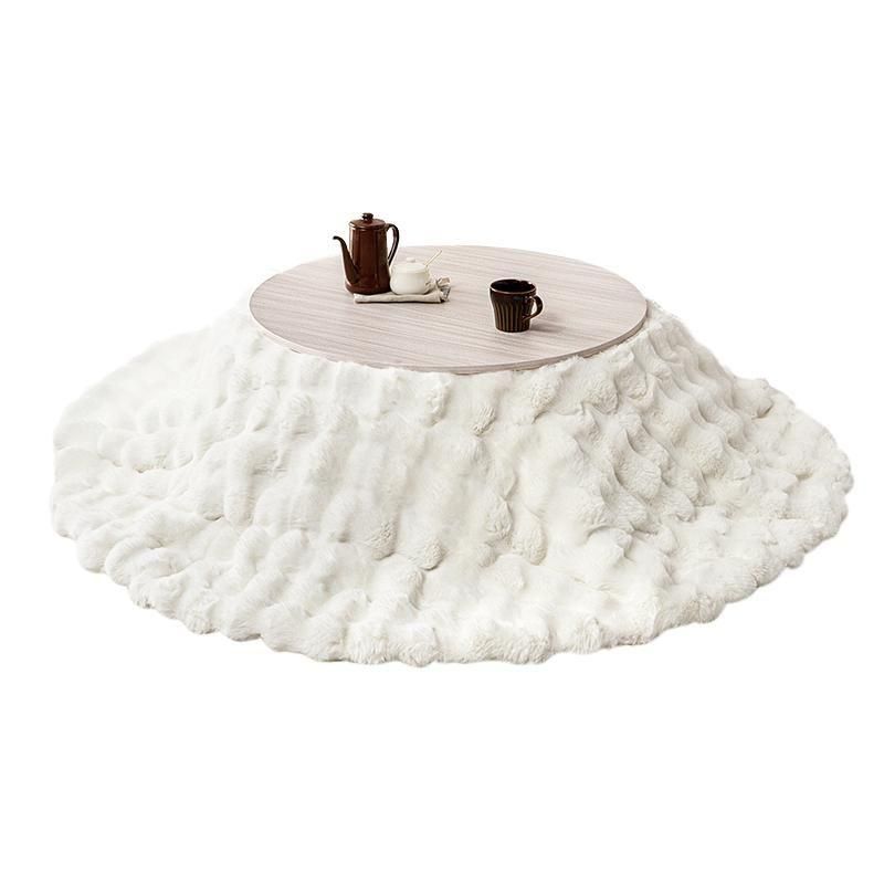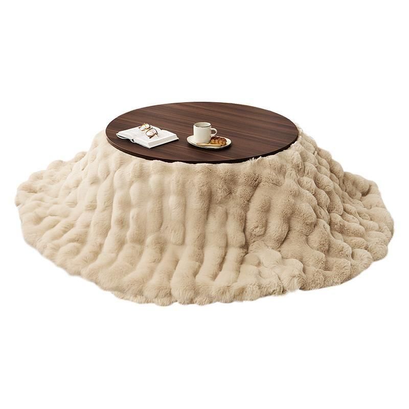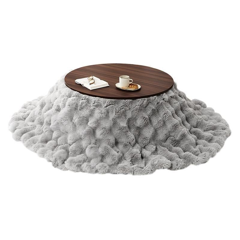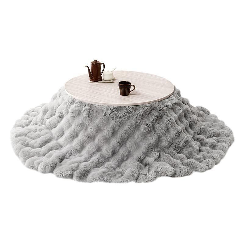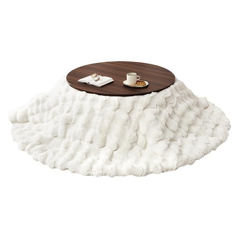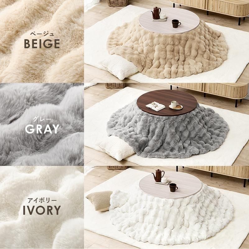 天板がリバーシブルでオールシーズン活躍するカジュアルコタツ。ラビットファーのような、ふわもこの掛け布団セット