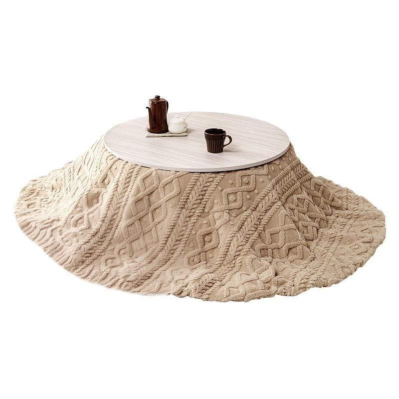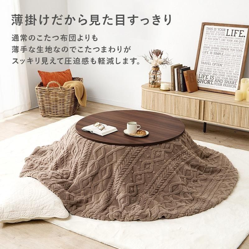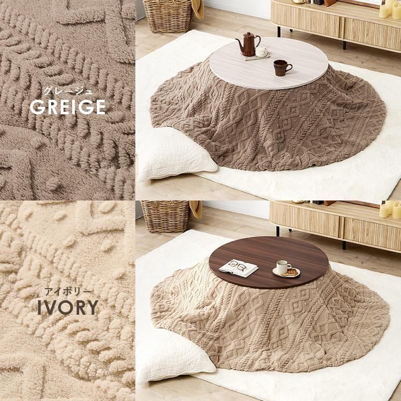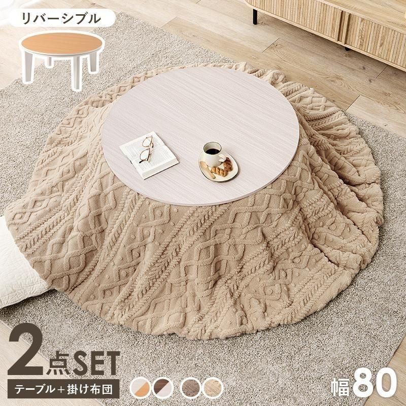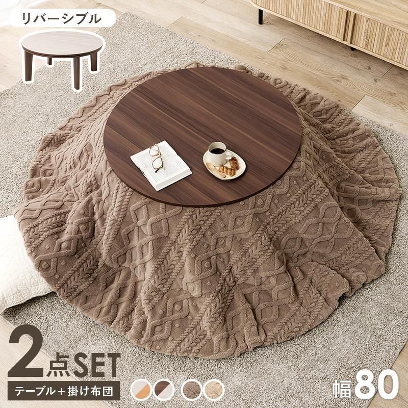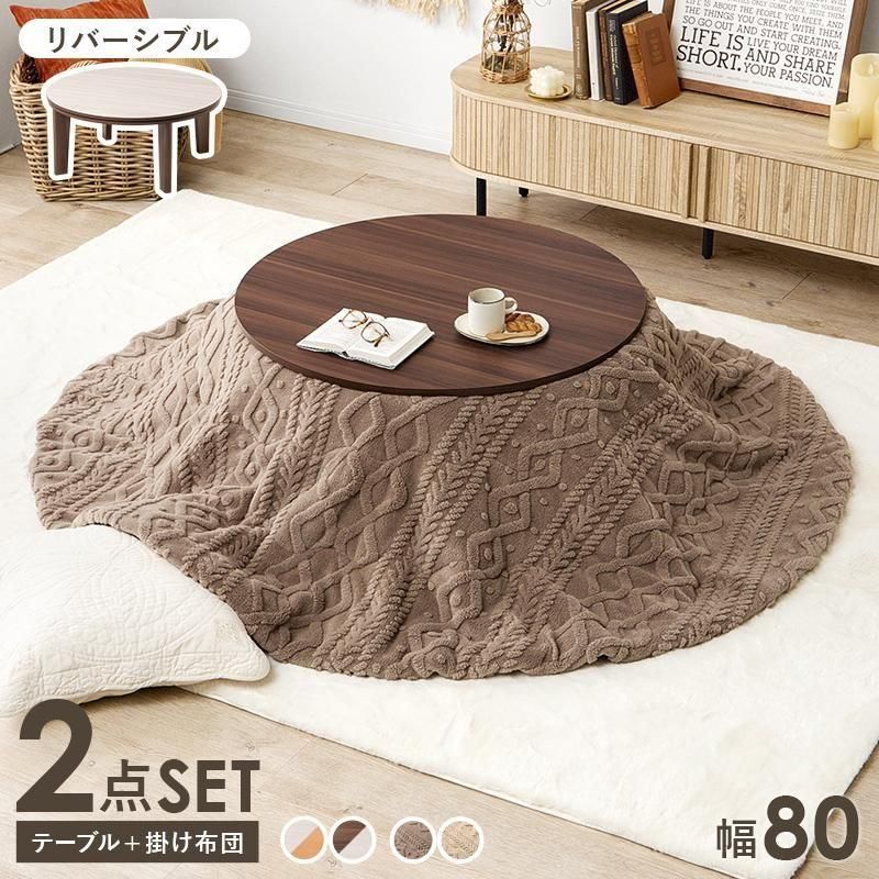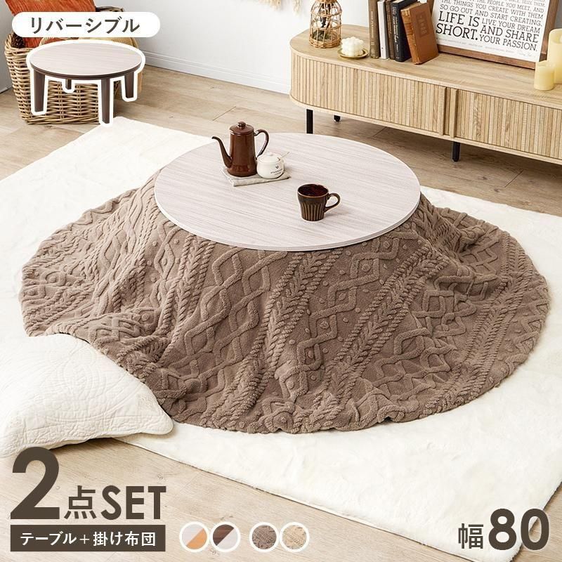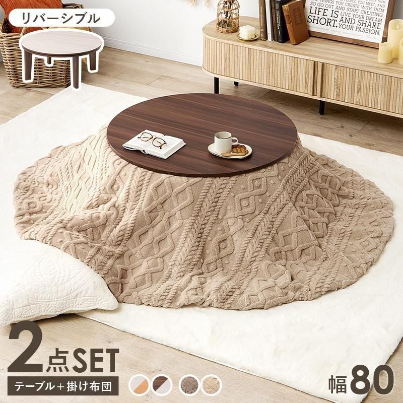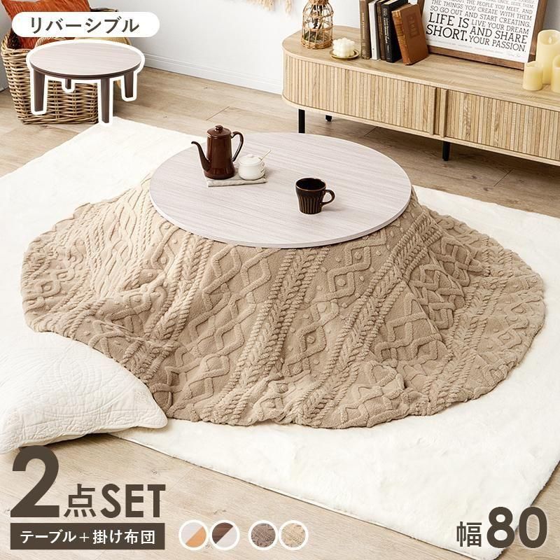 天板がリバーシブルでオールシーズン活躍するカジュアルコタツ。セーターのような立体的なデザインがおしゃれな掛け布団セット