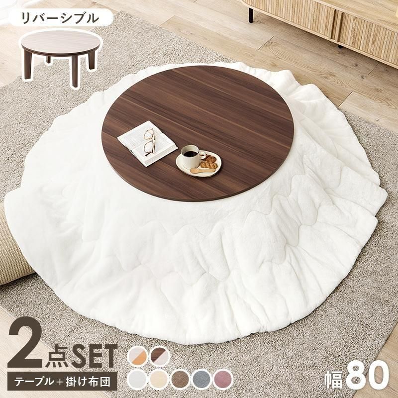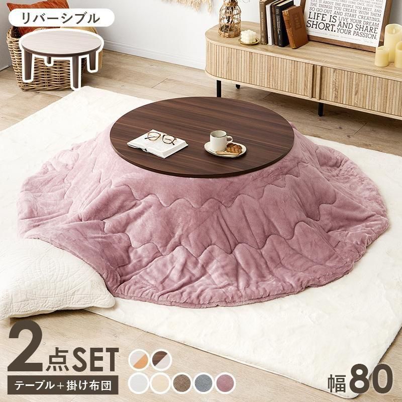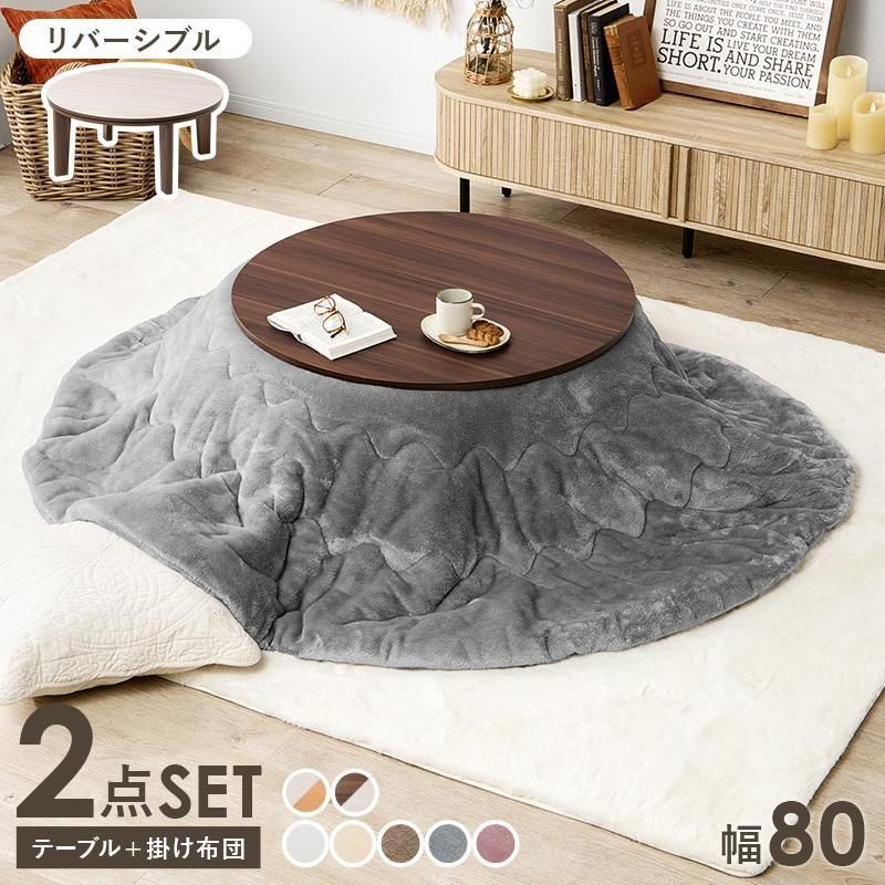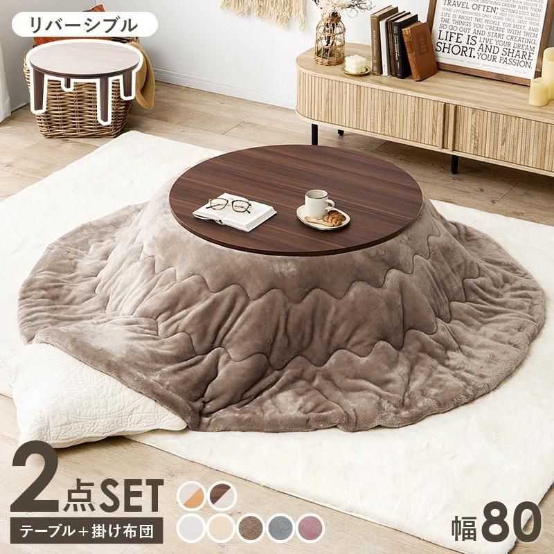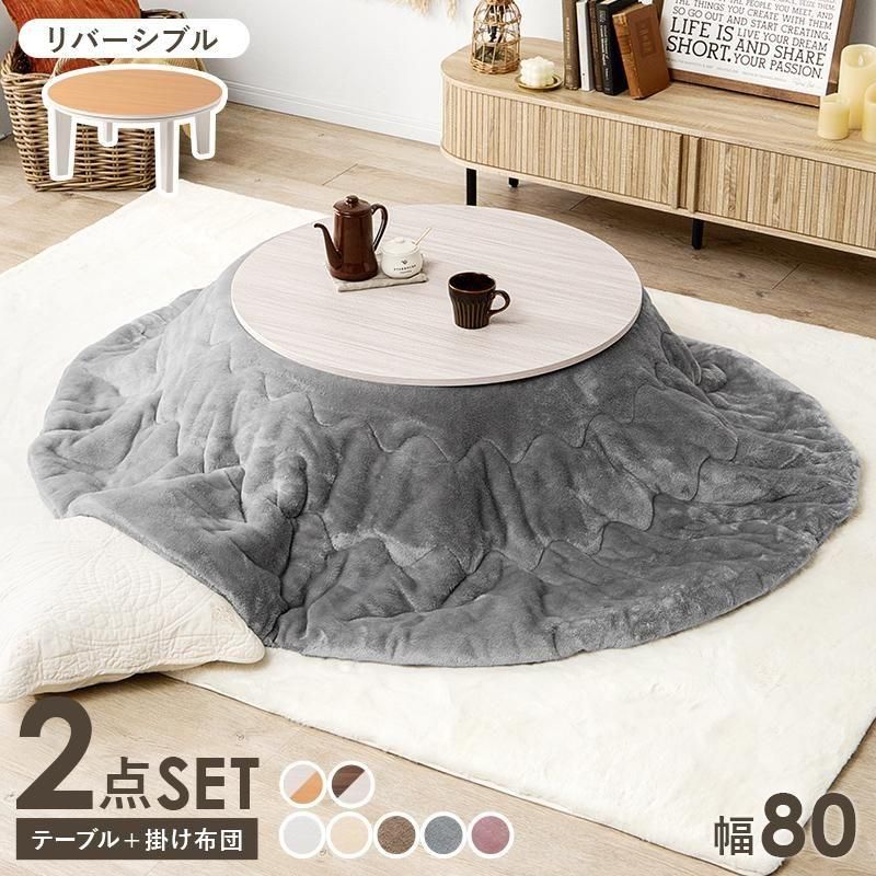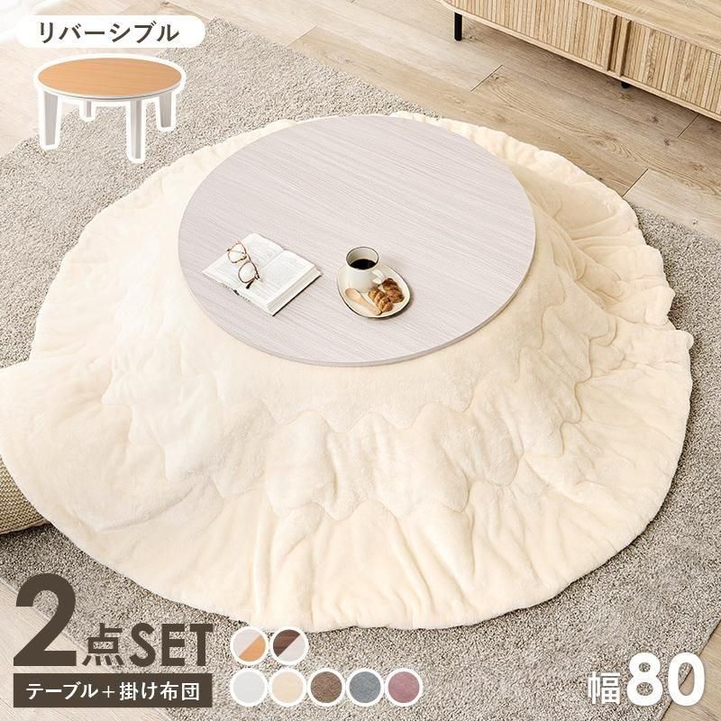天板がリバーシブルでオールシーズン活躍するカジュアルコタツ。とろけるような肌触りのシンプルな掛け布団セット