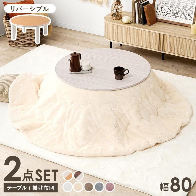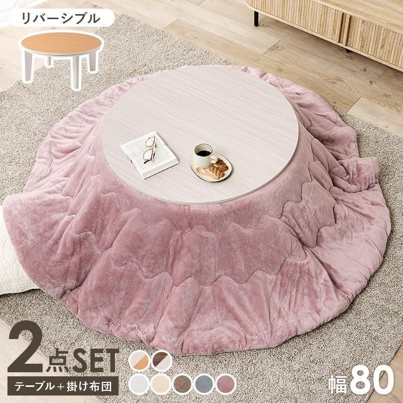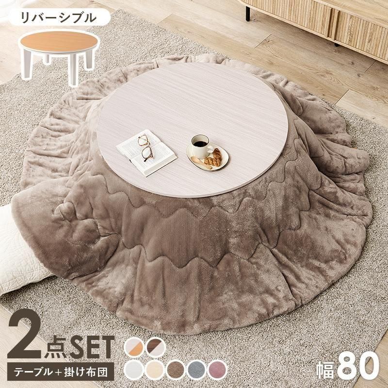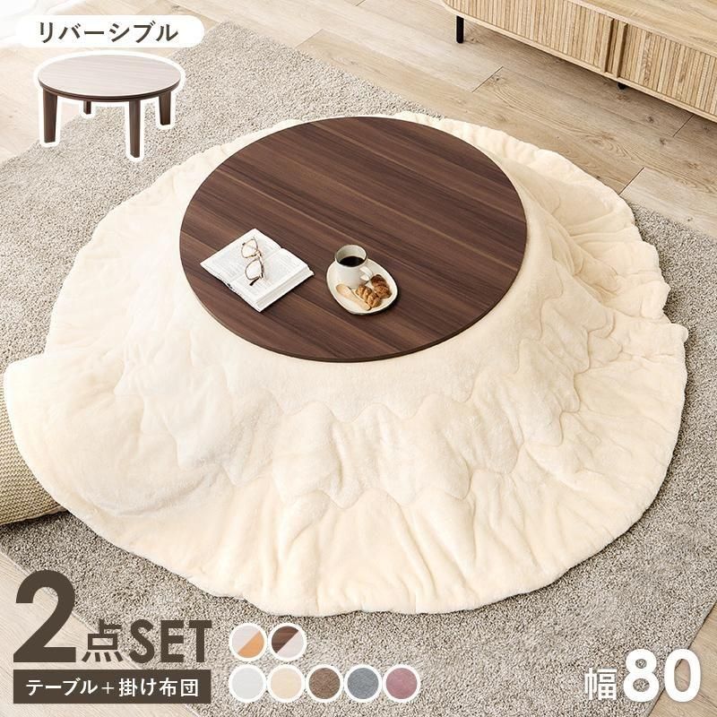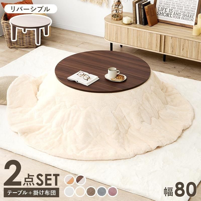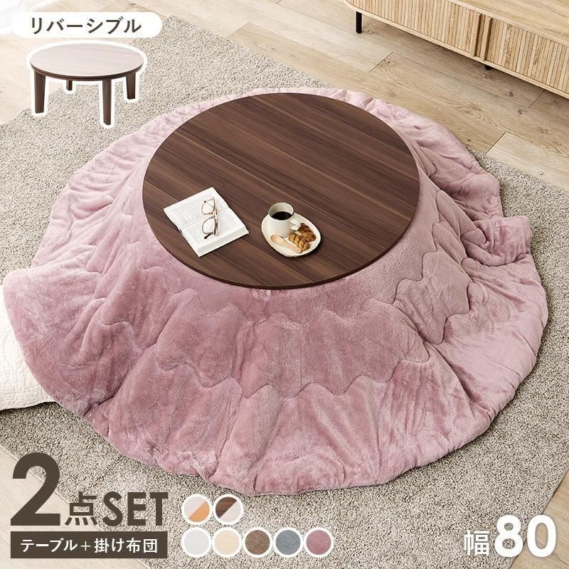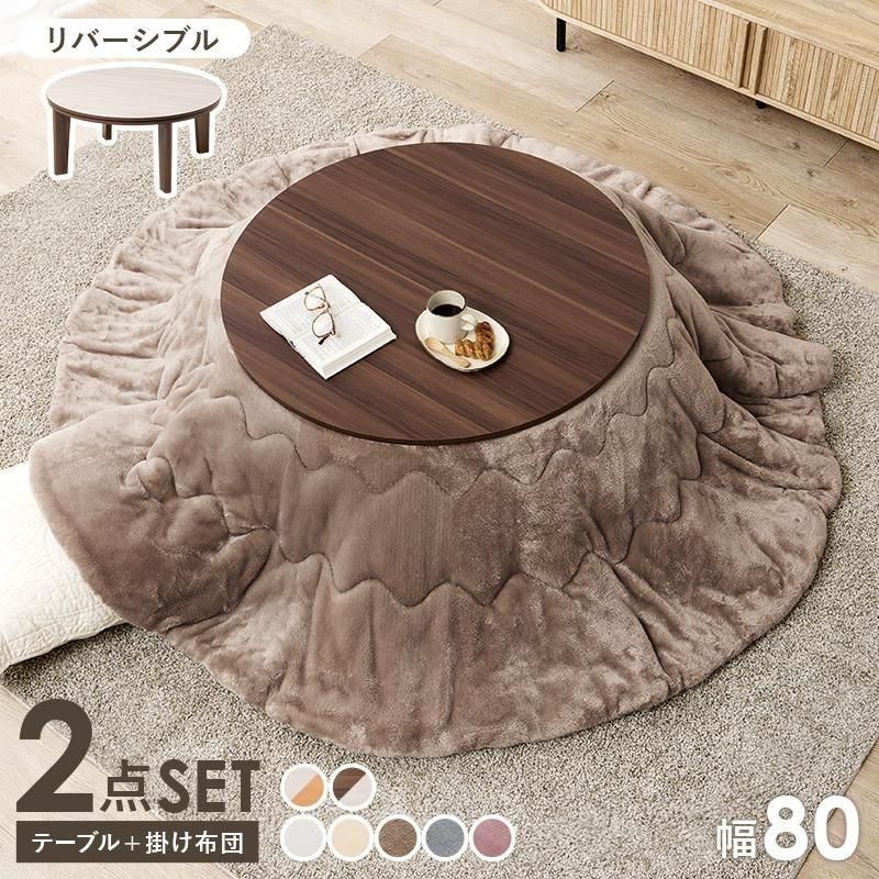 天板がリバーシブルでオールシーズン活躍するカジュアルコタツ。とろけるような肌触りのシンプルな掛け布団セット