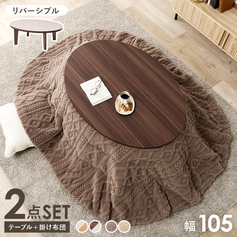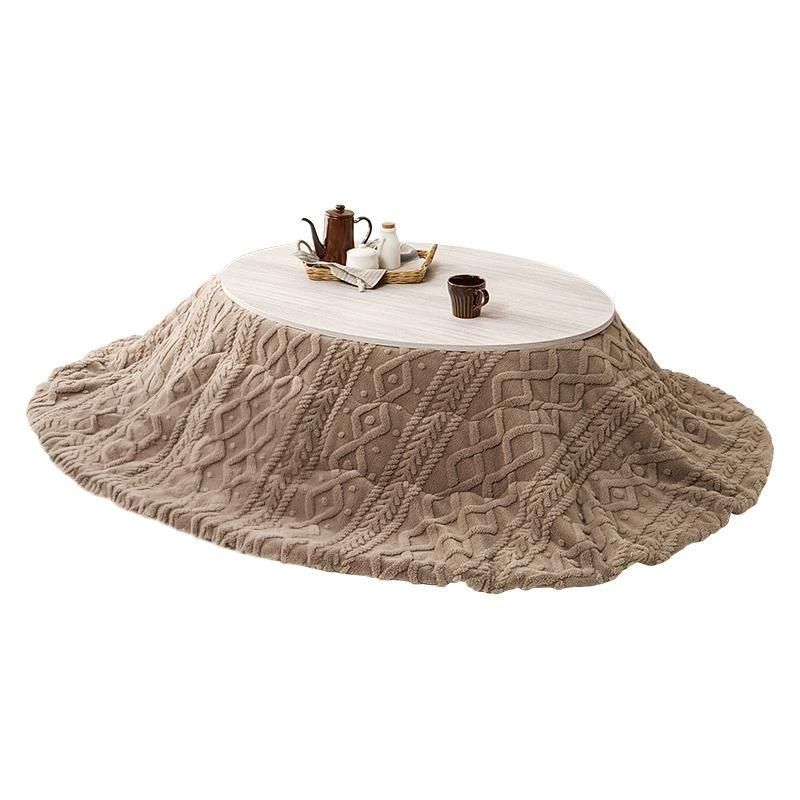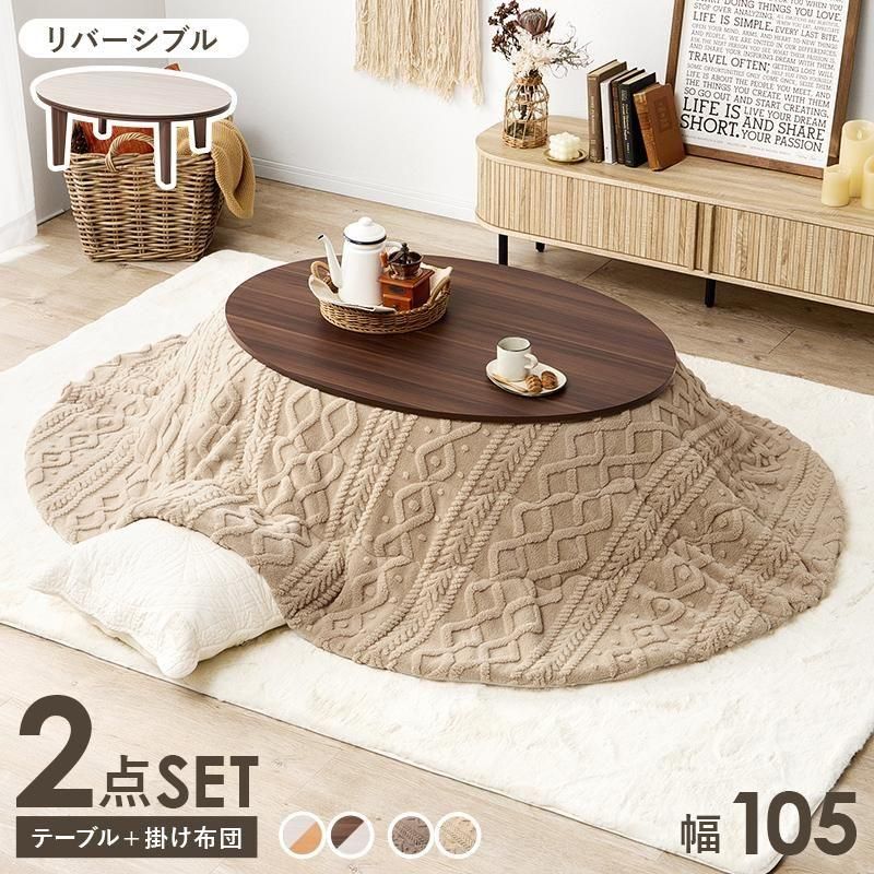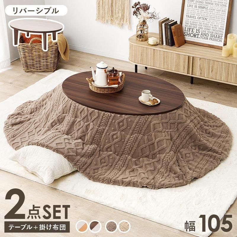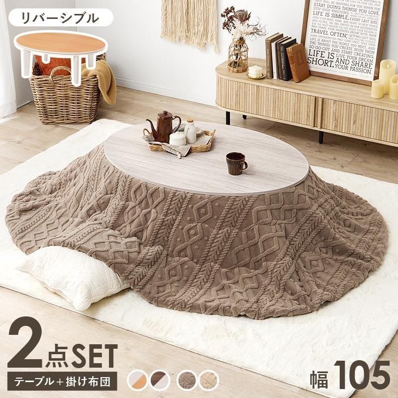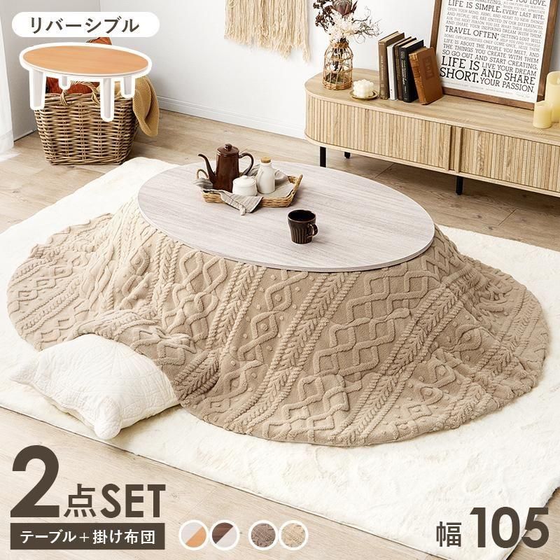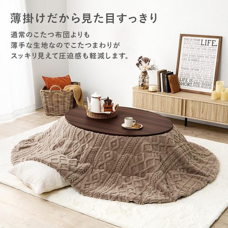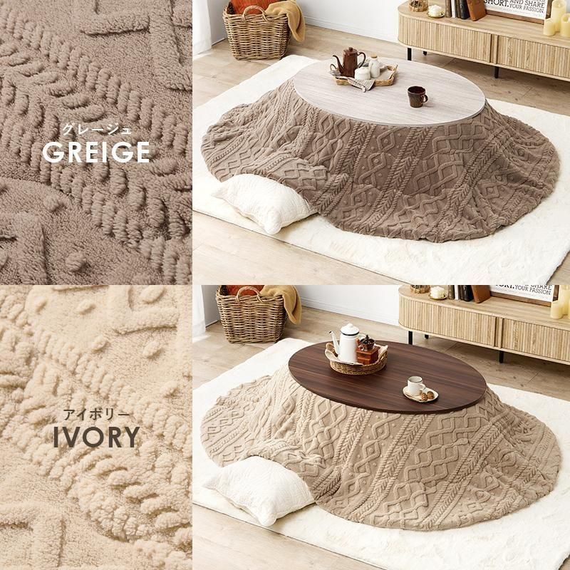 天板がリバーシブルでオールシーズン活躍するカジュアルコタツ。セーターのような立体的なデザインがおしゃれな掛け布団セット