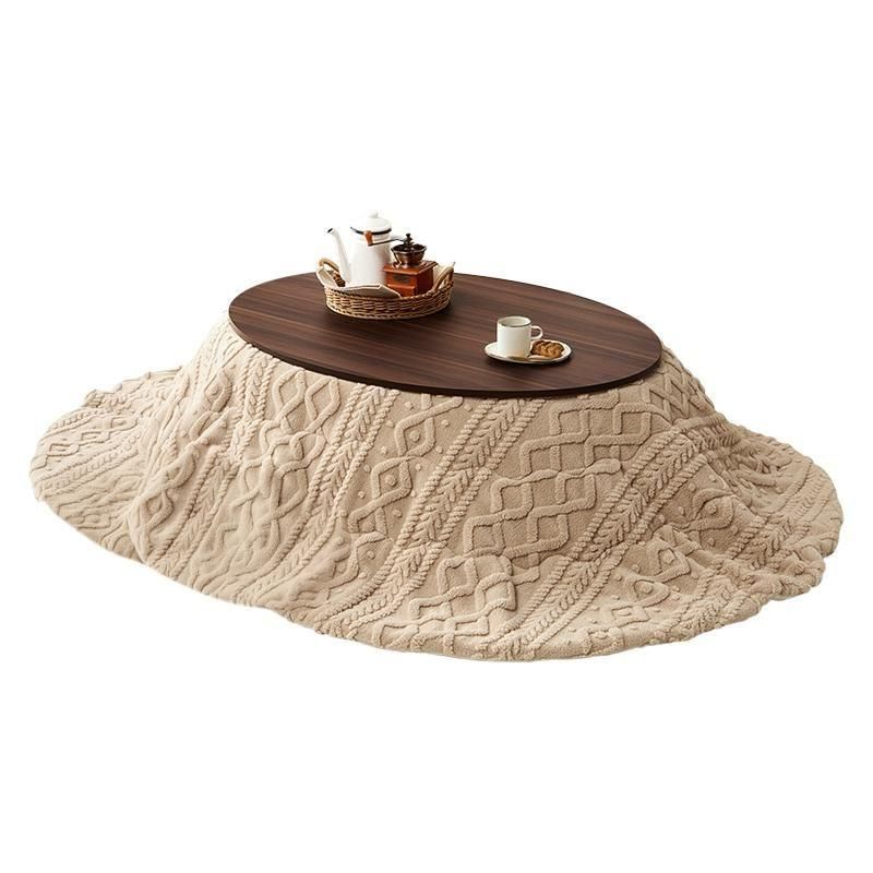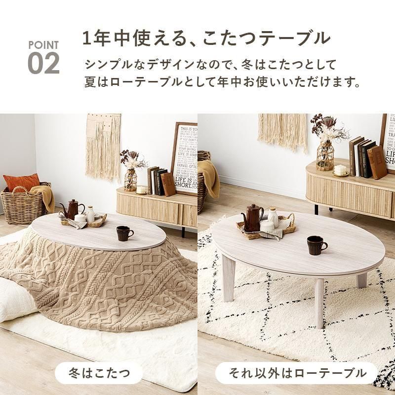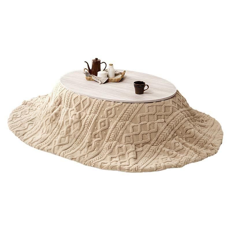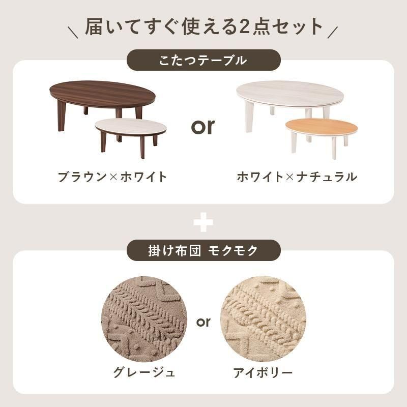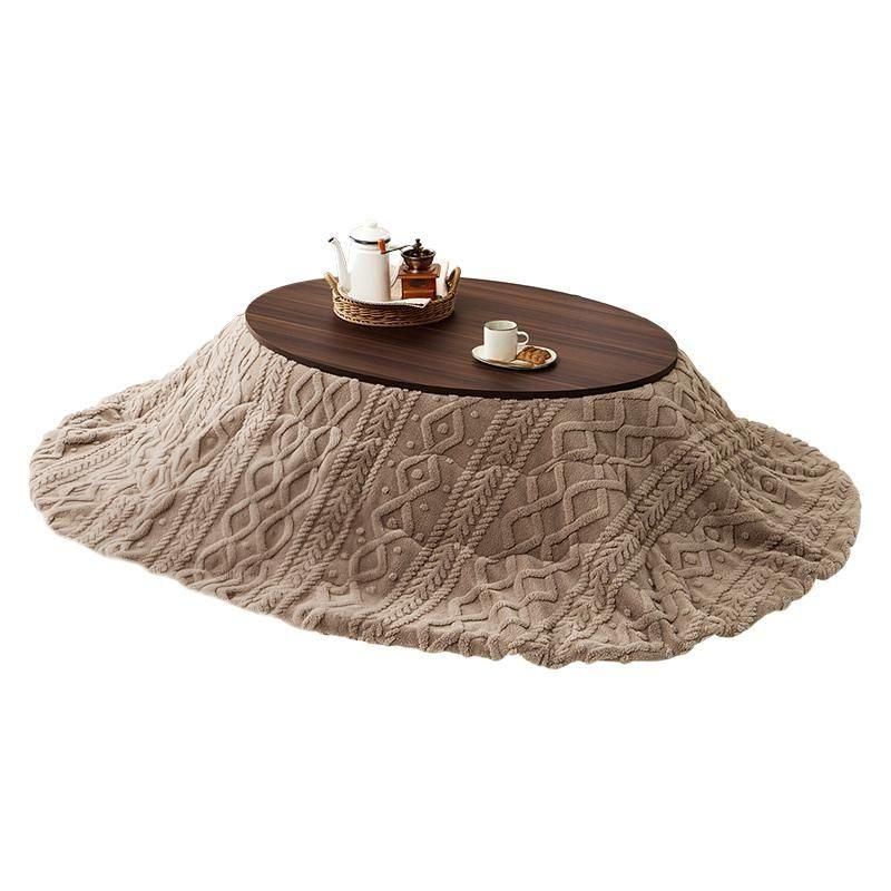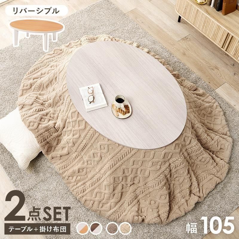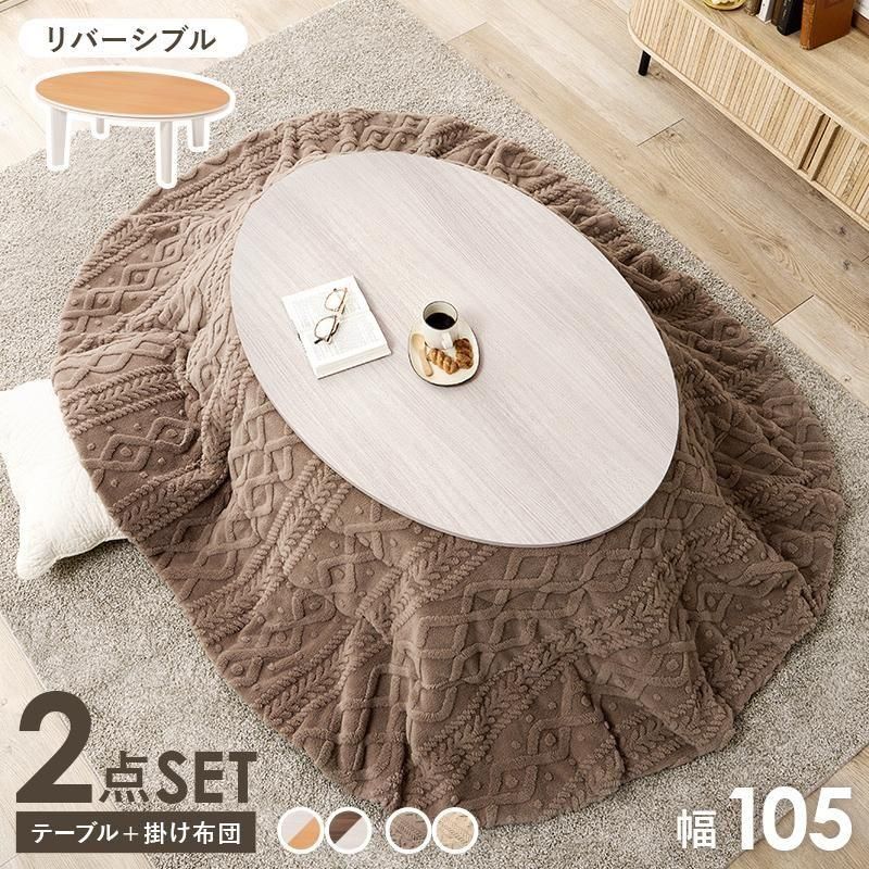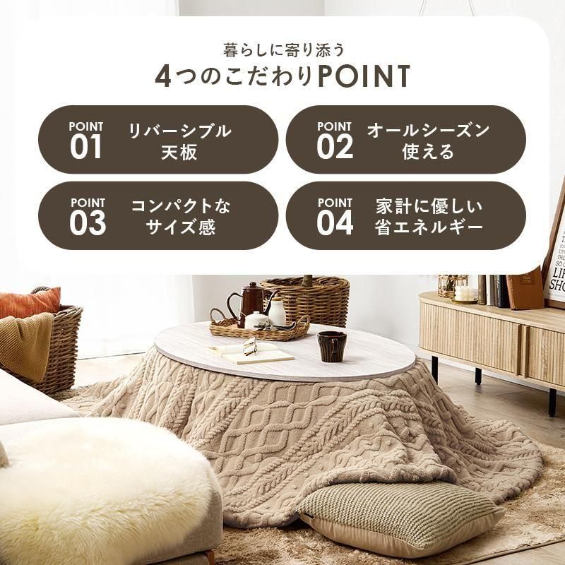 天板がリバーシブルでオールシーズン活躍するカジュアルコタツ。セーターのような立体的なデザインがおしゃれな掛け布団セット