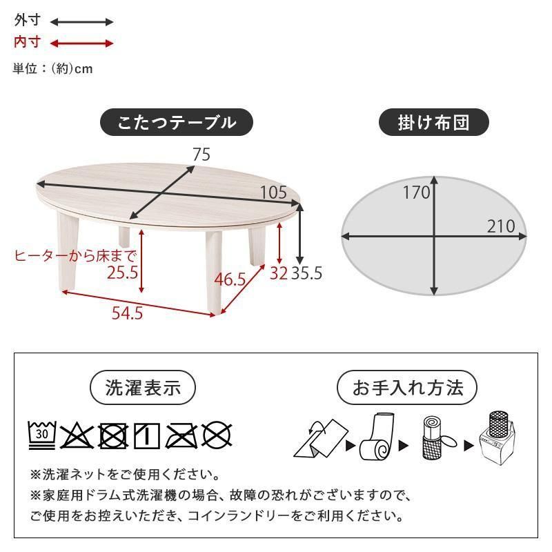 - サイズ : こたつ:(約)幅105×奥行75×高さ35.5cm、掛ふとん:(約)210×170cm