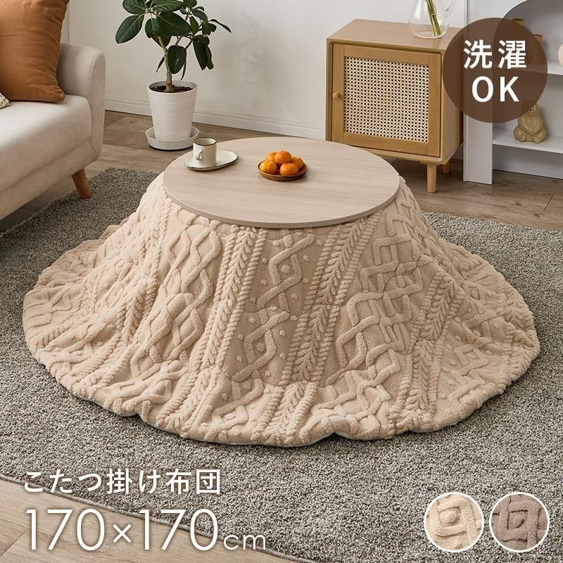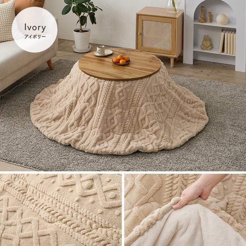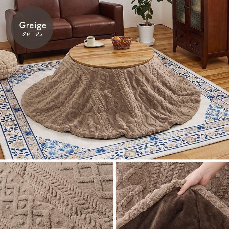 ケーブルニットのセーターのような立体的なデザインがおしゃれな薄掛け布団。もこもこしすぎない厚みでコンパクトに収納可能。洗濯可能
