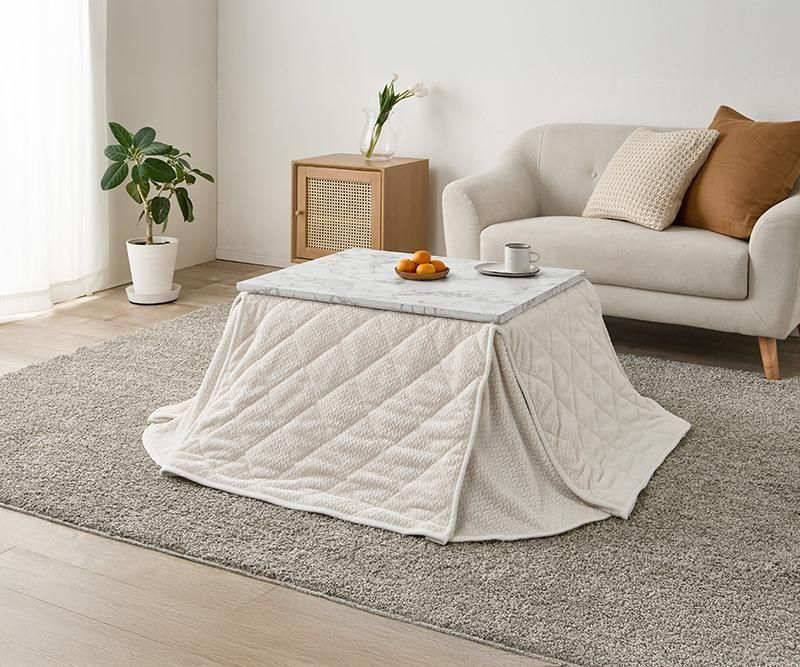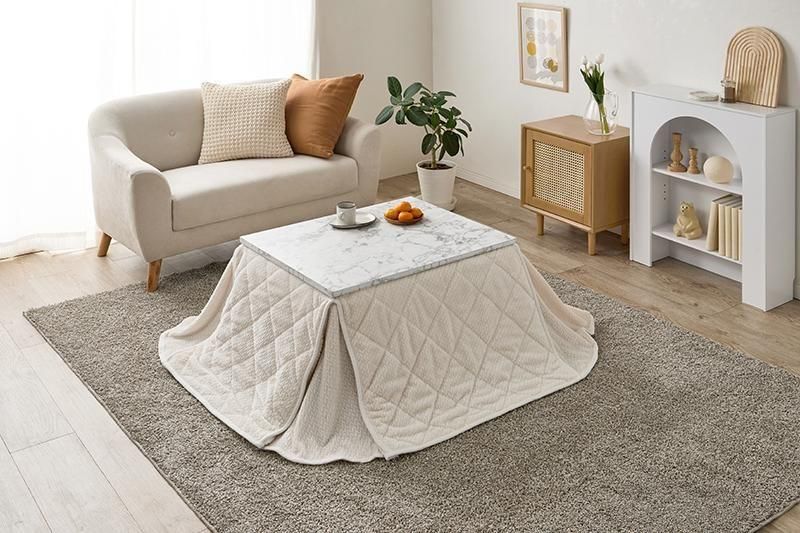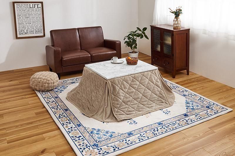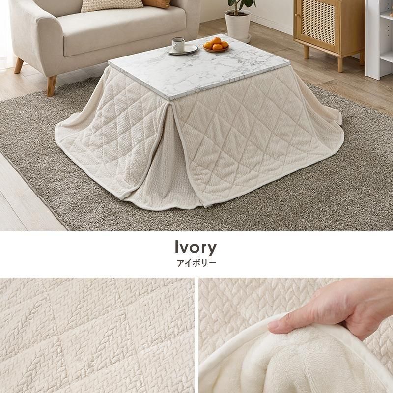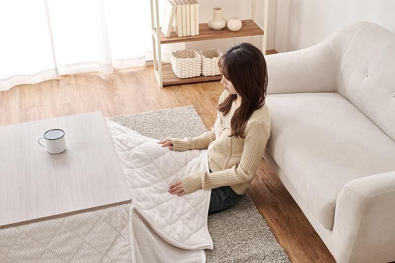 細かく編みこまれた立体感のあるニット柄が上品なこたつ布団。四隅にスリットが入った省スペースタイプなので、お部屋の圧迫感を軽減します。洗濯可能