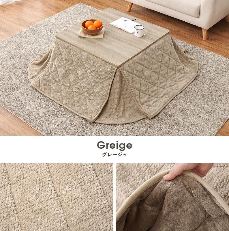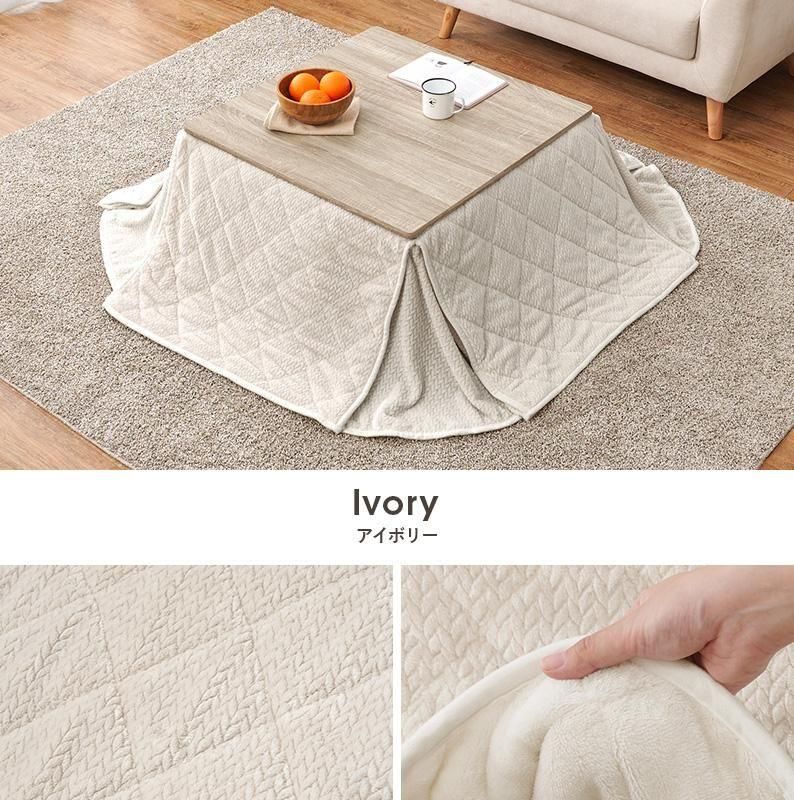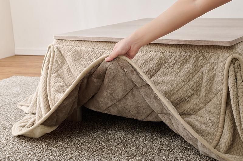 細かく編みこまれた立体感のあるニット柄が上品なこたつ布団。四隅にスリットが入った省スペースタイプなので、お部屋の圧迫感を軽減します。洗濯可能