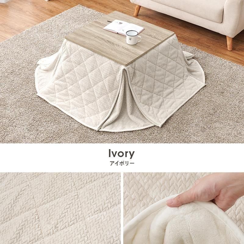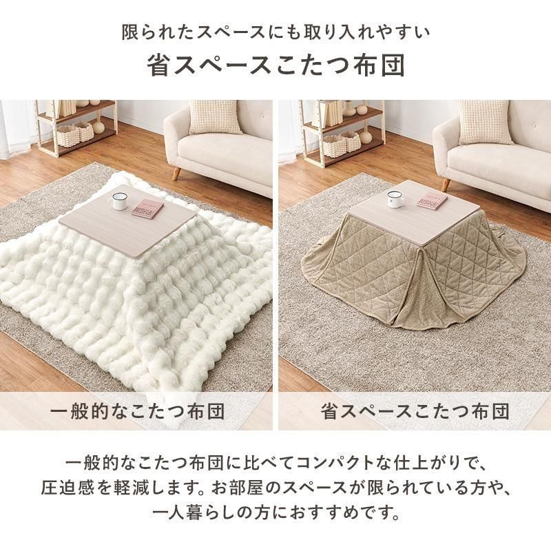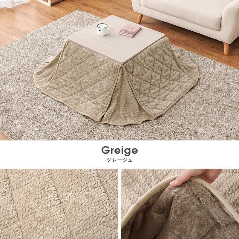 細かく編みこまれた立体感のあるニット柄が上品なこたつ布団。四隅にスリットが入った省スペースタイプなので、お部屋の圧迫感を軽減します。洗濯可能