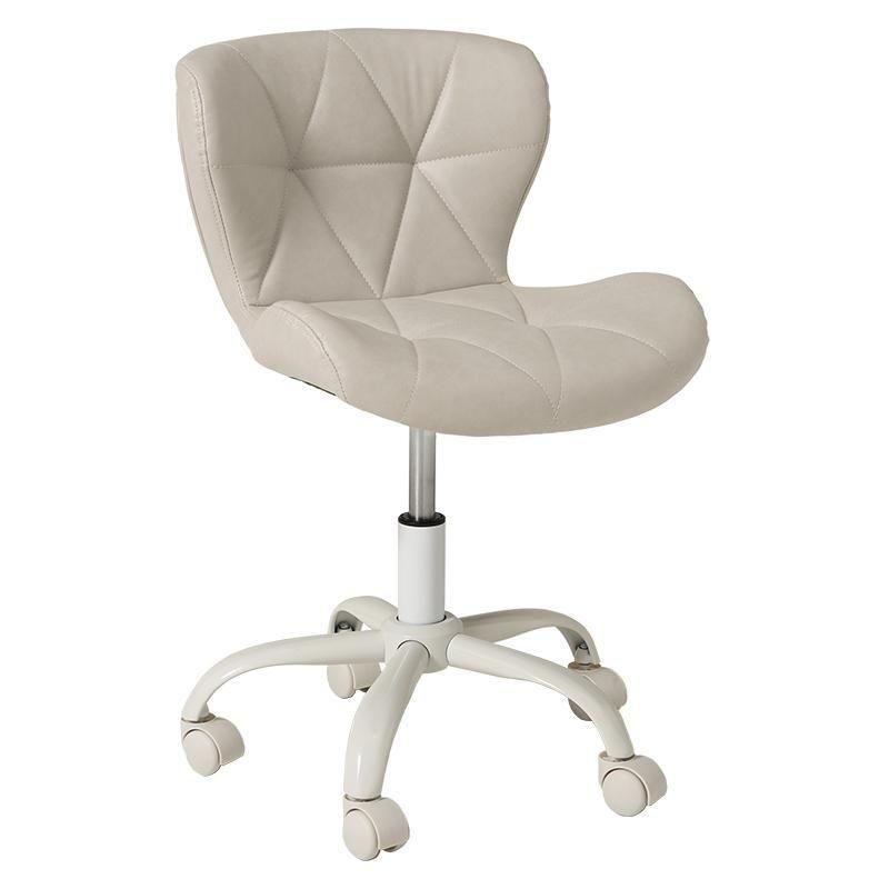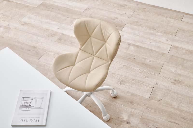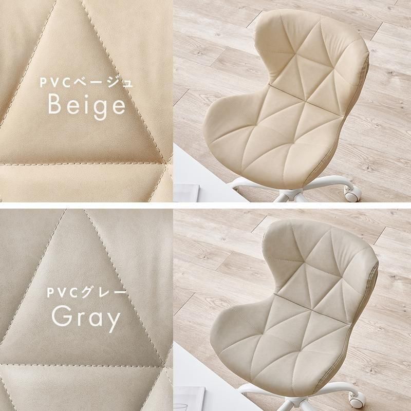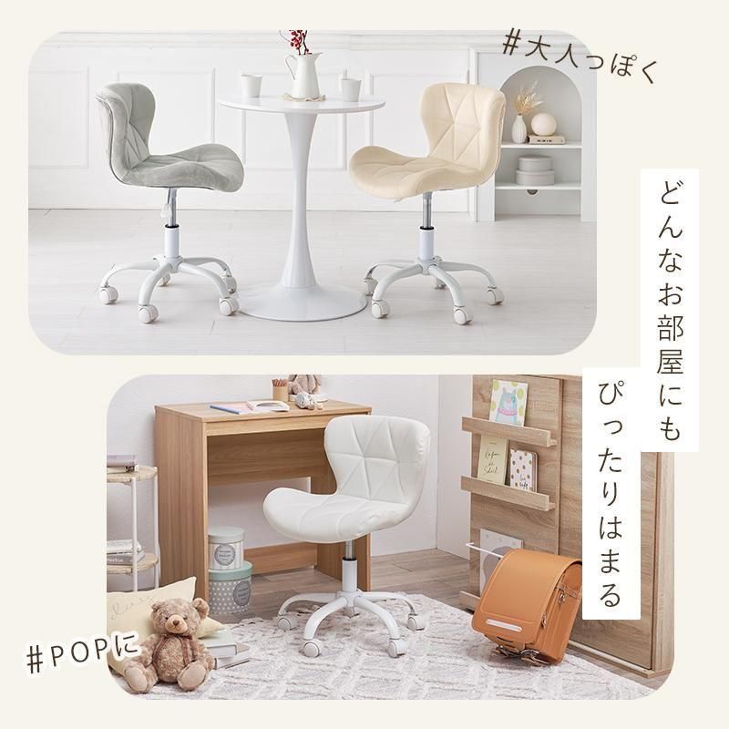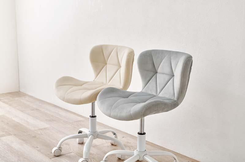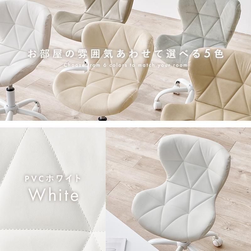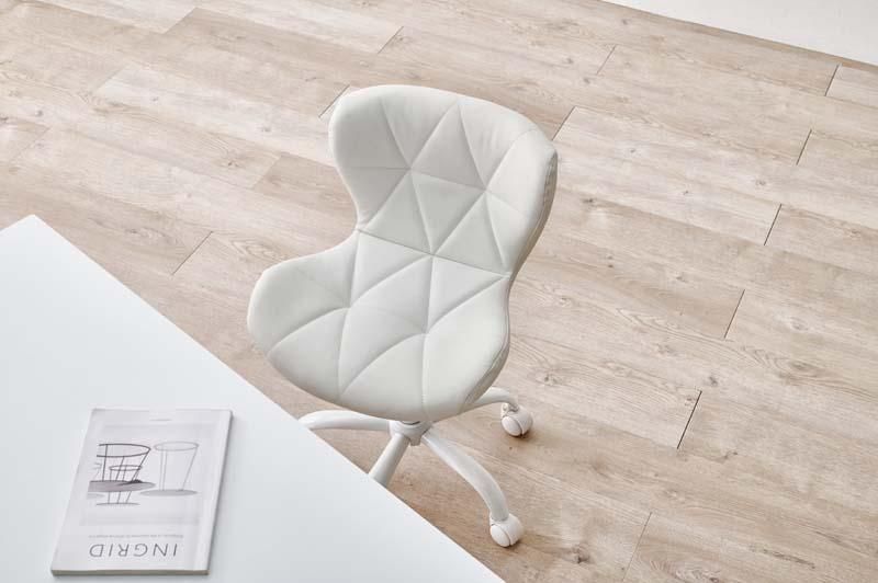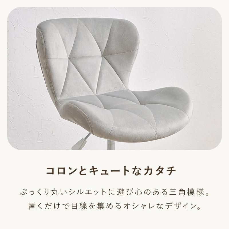 かわいいホワイトの足元に、遊び心のある三角模様の座面を合わせたチェア。背もたれや座面はやわらかくカーブしており身体の丸みに優しくフィットします。小柄な人にも嬉しい低め設計。