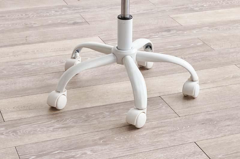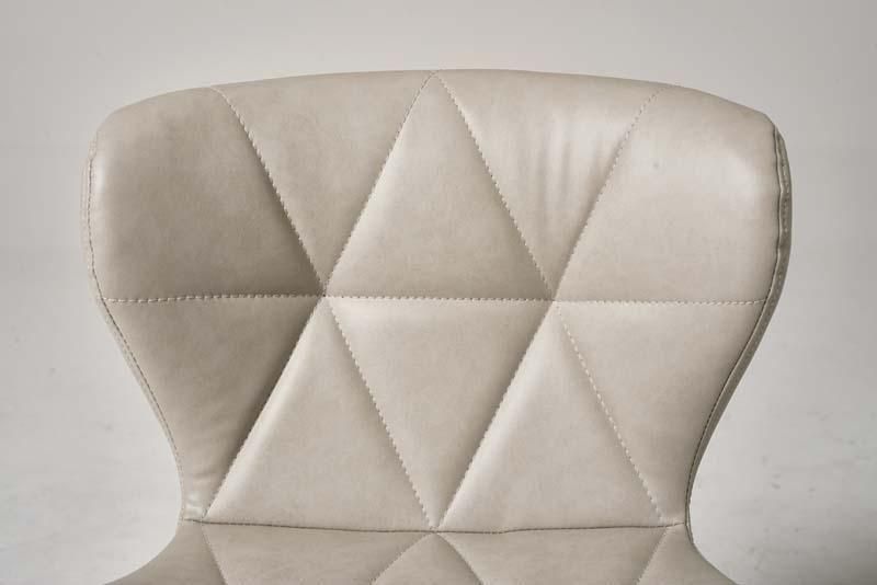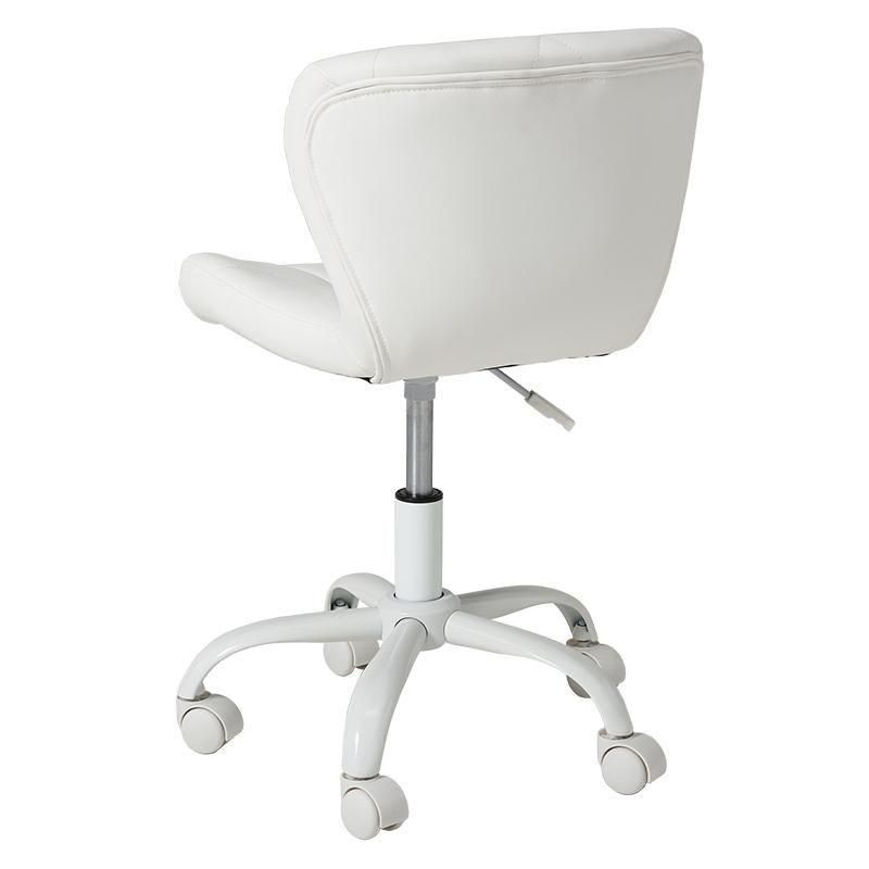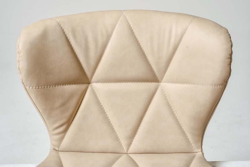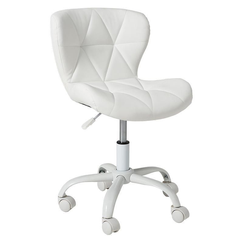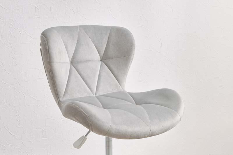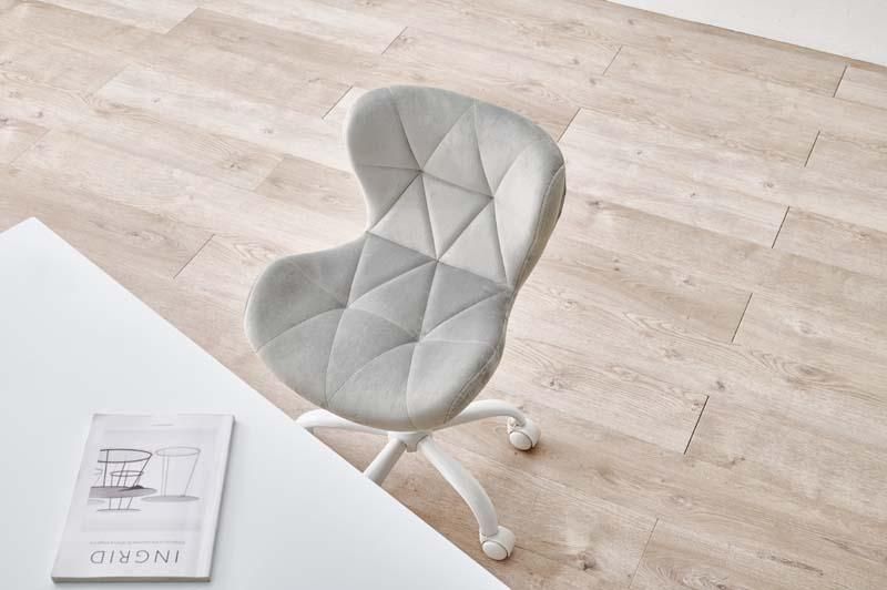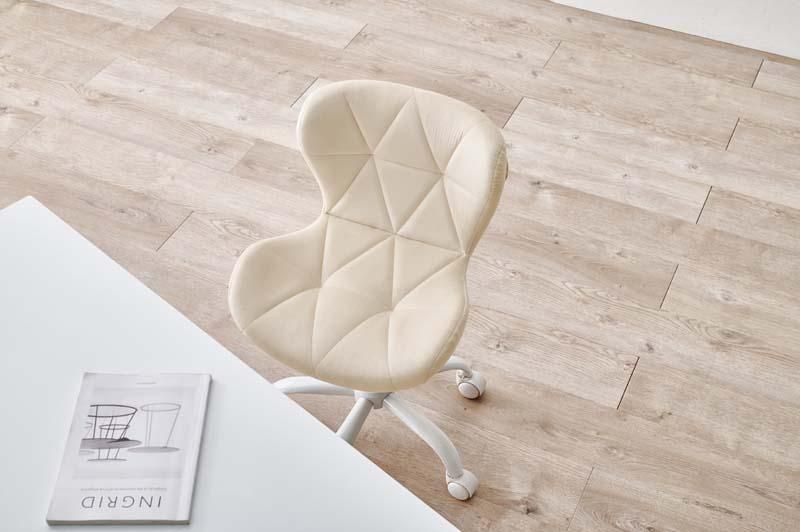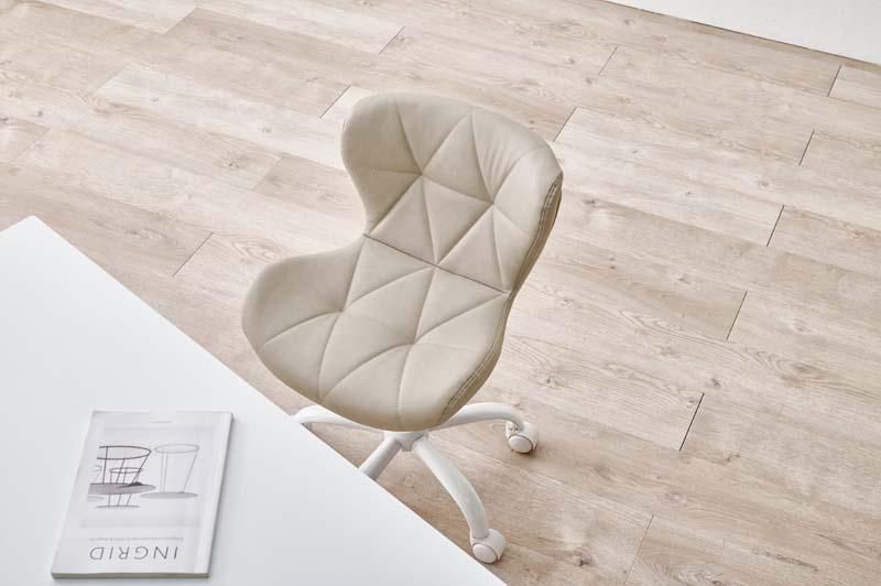 かわいいホワイトの足元に、遊び心のある三角模様の座面を合わせたチェア。背もたれや座面はやわらかくカーブしており身体の丸みに優しくフィットします。小柄な人にも嬉しい低め設計。