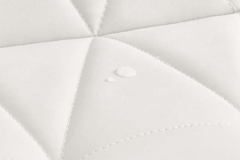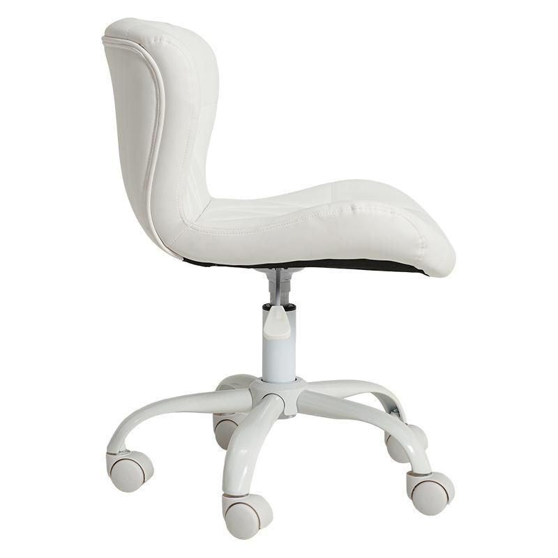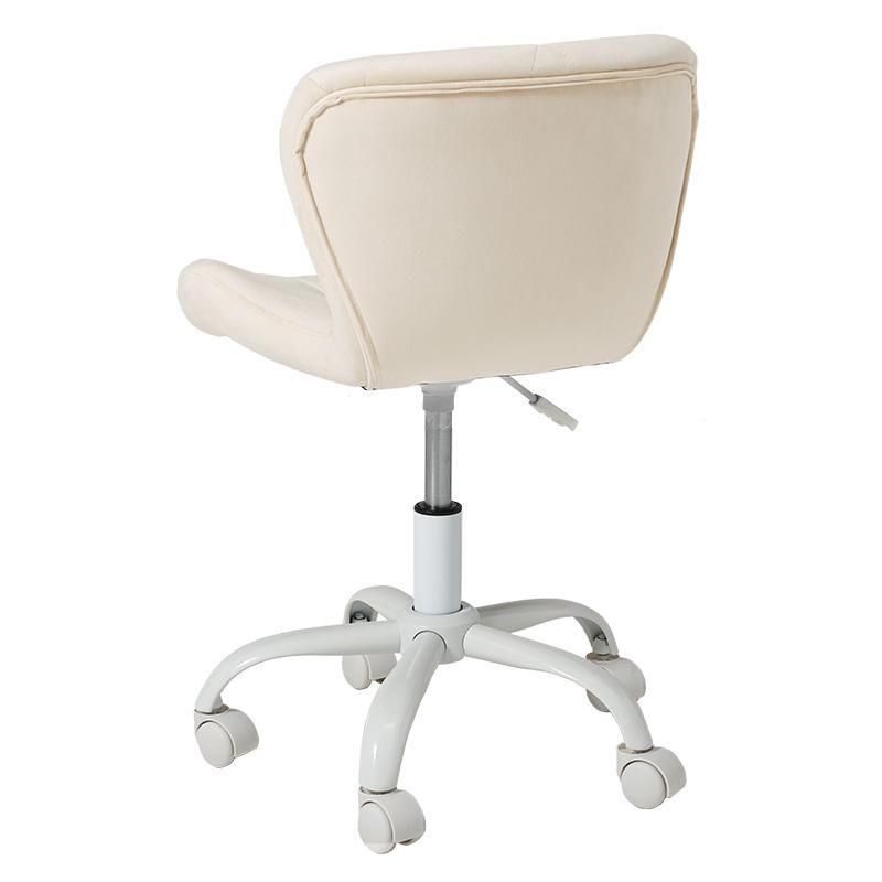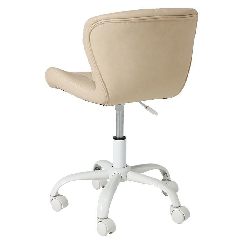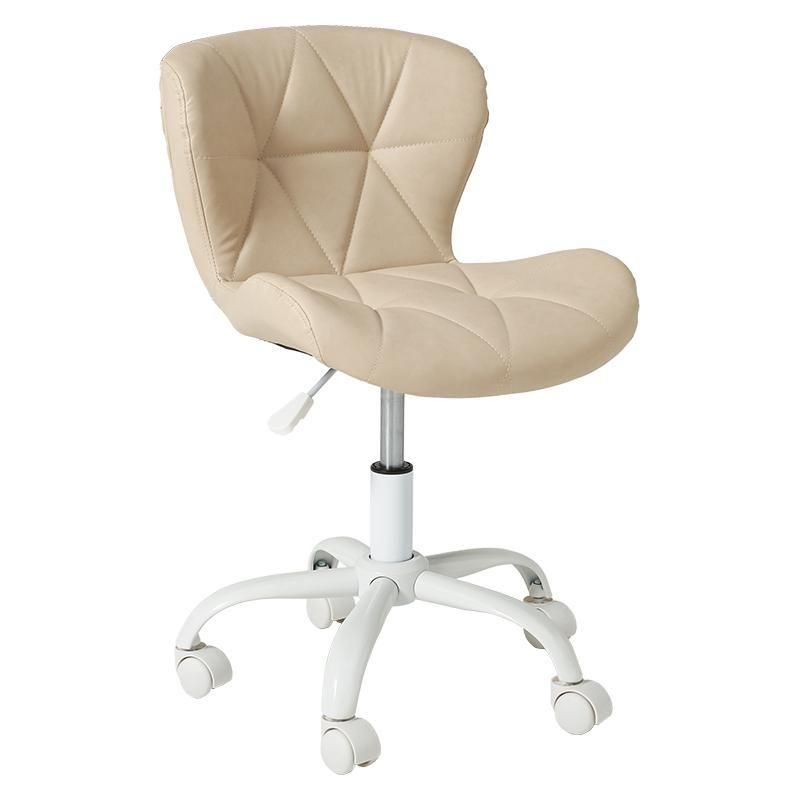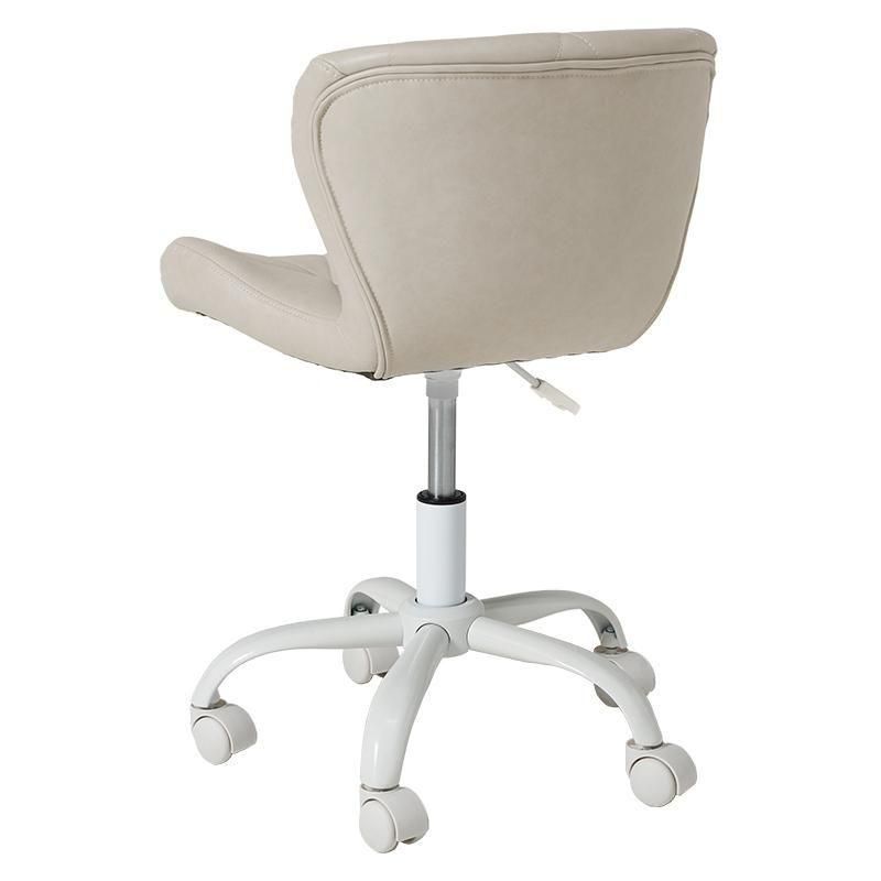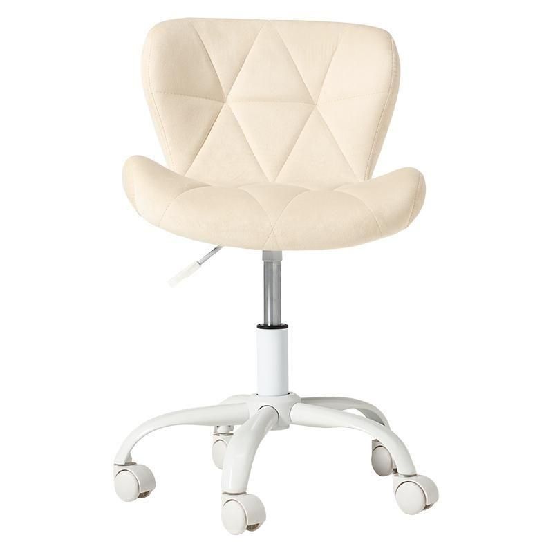 かわいいホワイトの足元に、遊び心のある三角模様の座面を合わせたチェア。背もたれや座面はやわらかくカーブしており身体の丸みに優しくフィットします。小柄な人にも嬉しい低め設計。