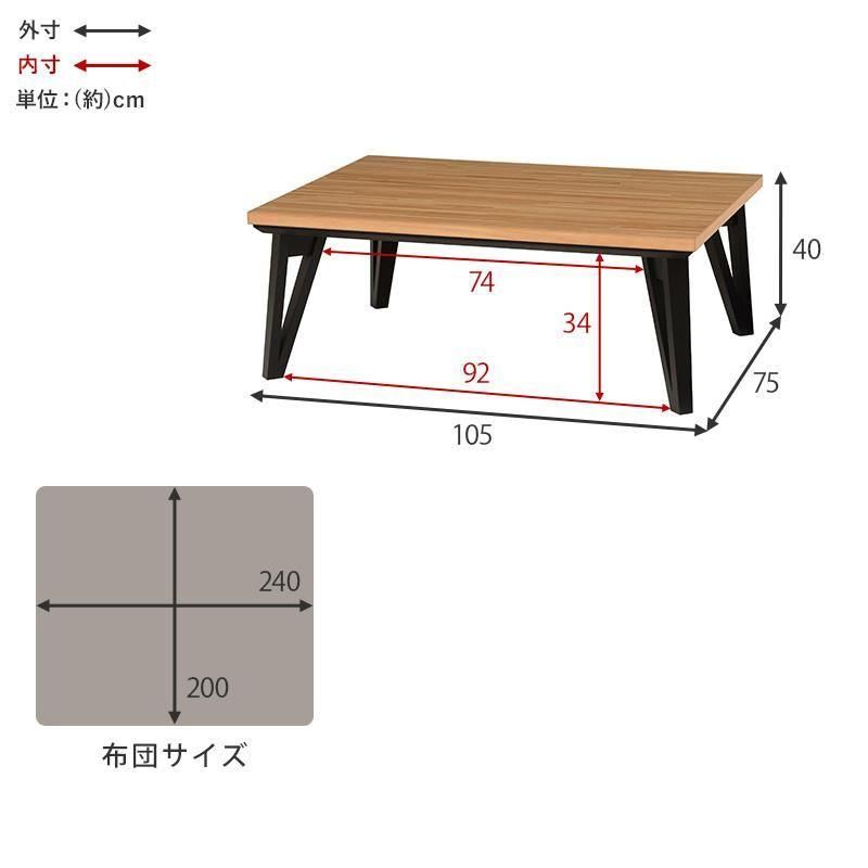 - サイズ : こたつ:(約)幅105×奥行75×高さ40cm、ふとん:(約)240×200cm