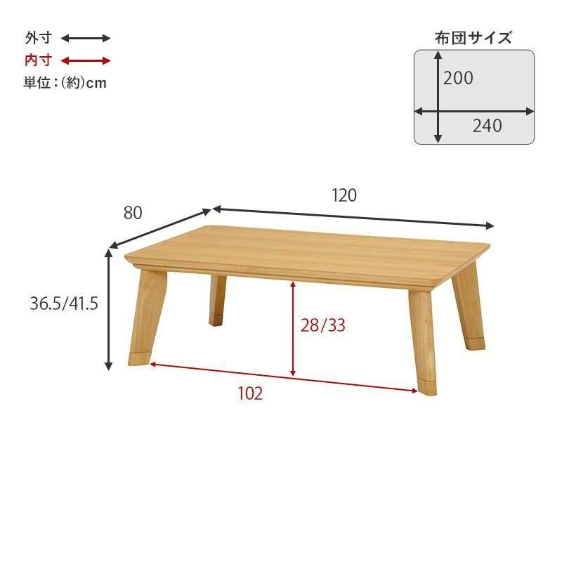 - サイズ : こたつ:(約)幅120×奥行80×高さ36.5/41.5cm、ふとん:(約)240×200cm