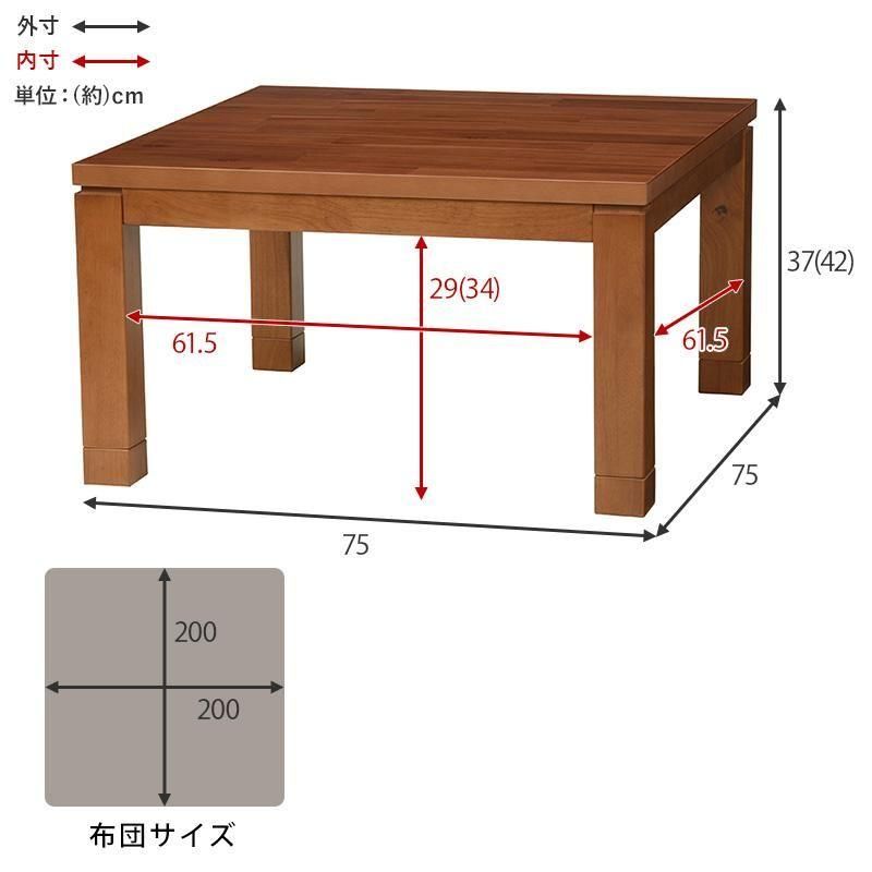 - サイズ : こたつ:(約)幅75×奥行75×高さ37/42cm、ふとん:(約)200×200cm
