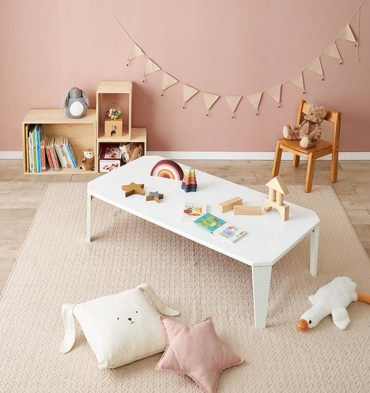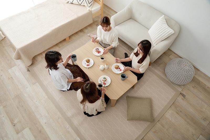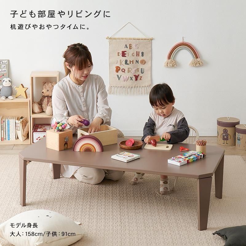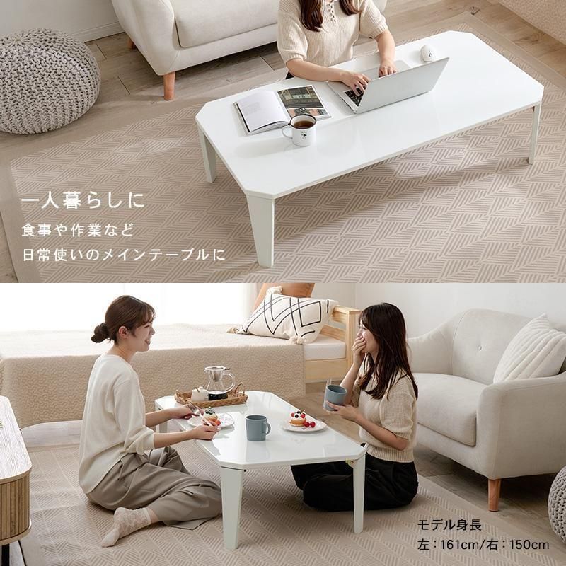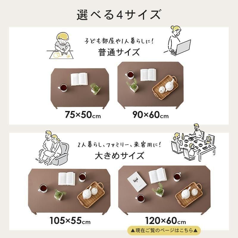 くすみカラーやモノトーンカラーが選べ、来客時やご家族でも使いやすい大きめサイズ。省スペース収納可能な折れ脚タイプ