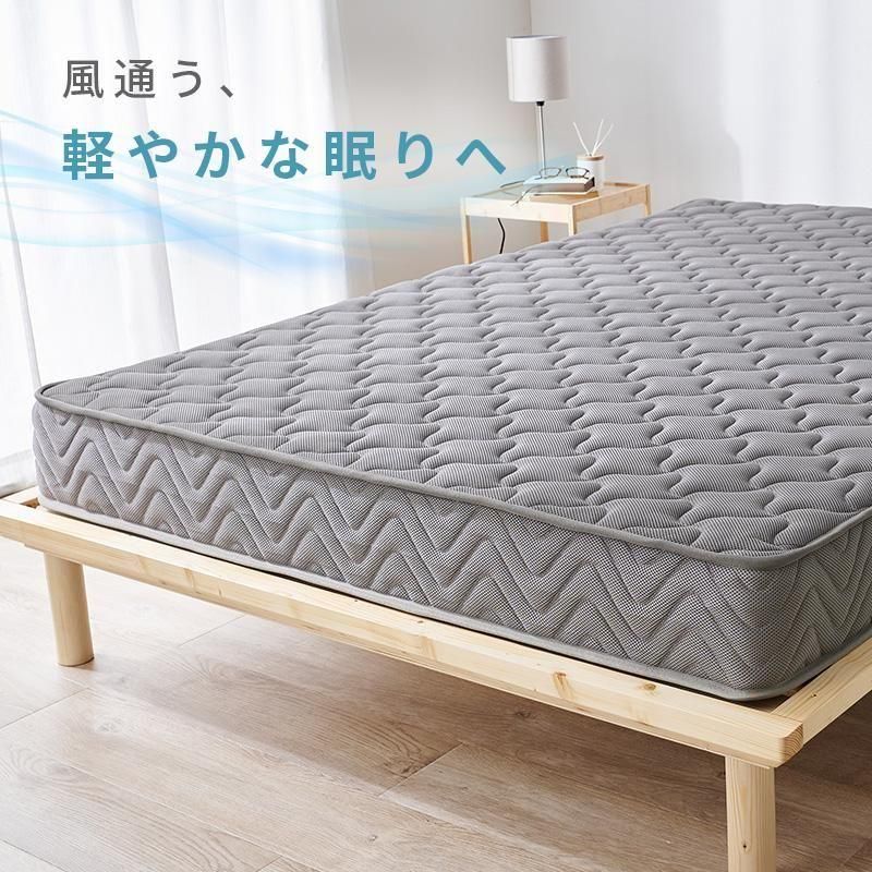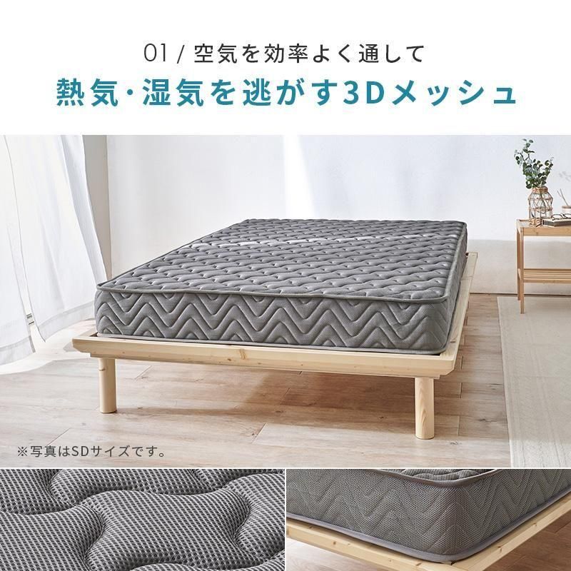 通気性の良い3Dメッシュ生地を全面に使用し、寝返りのたびにマットレスの熱気や湿気を逃がします。表裏の両面仕様なのでローテーションすればヘタリを抑えて長く使えます。