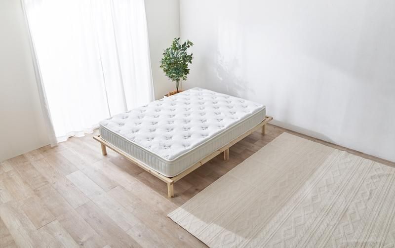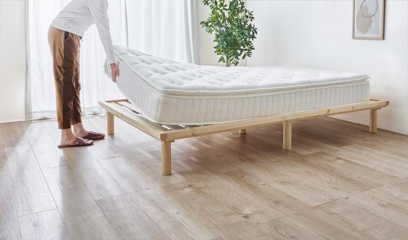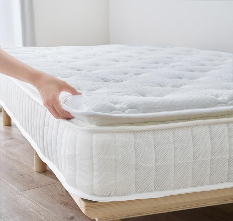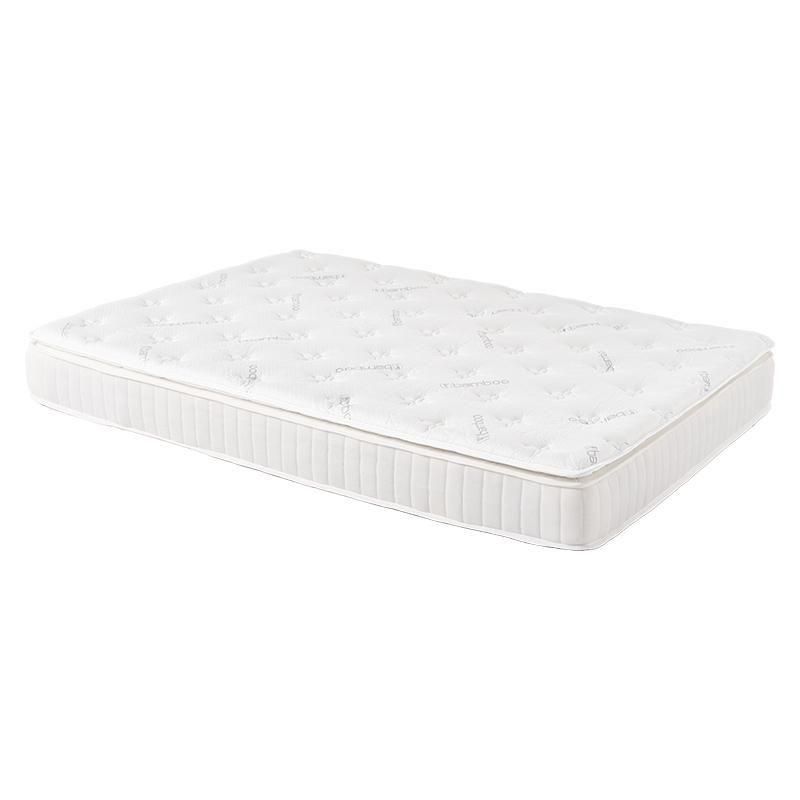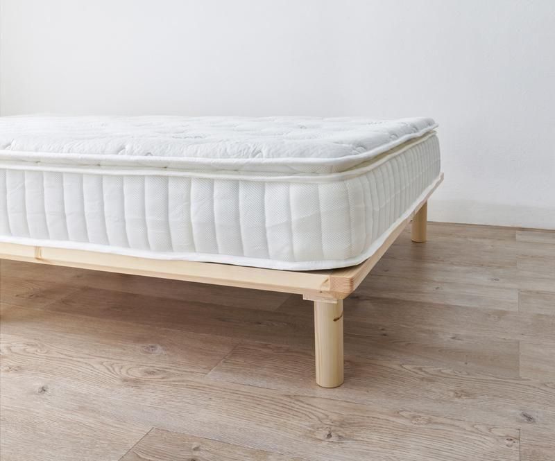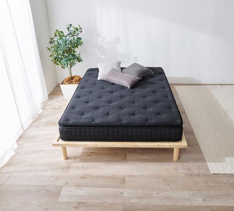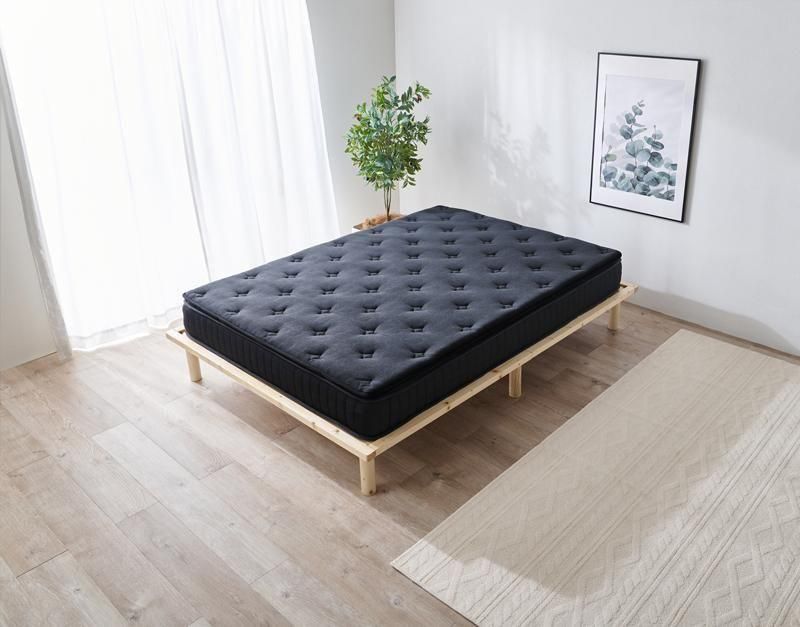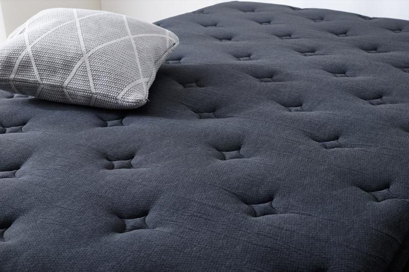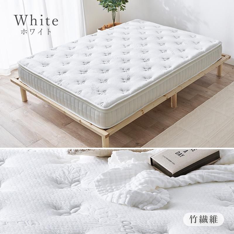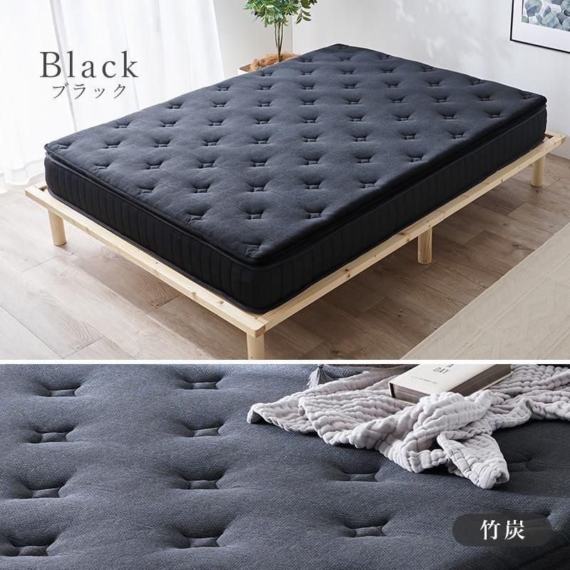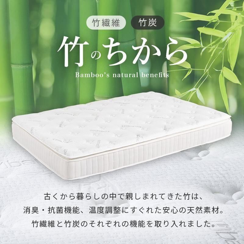 ふかふかのピロートップ付きの極厚マットレス。防ダニ、抗菌、防臭機能付きの中綿と張地には竹繊維、竹炭を練りこんだ繊維を使用しています。